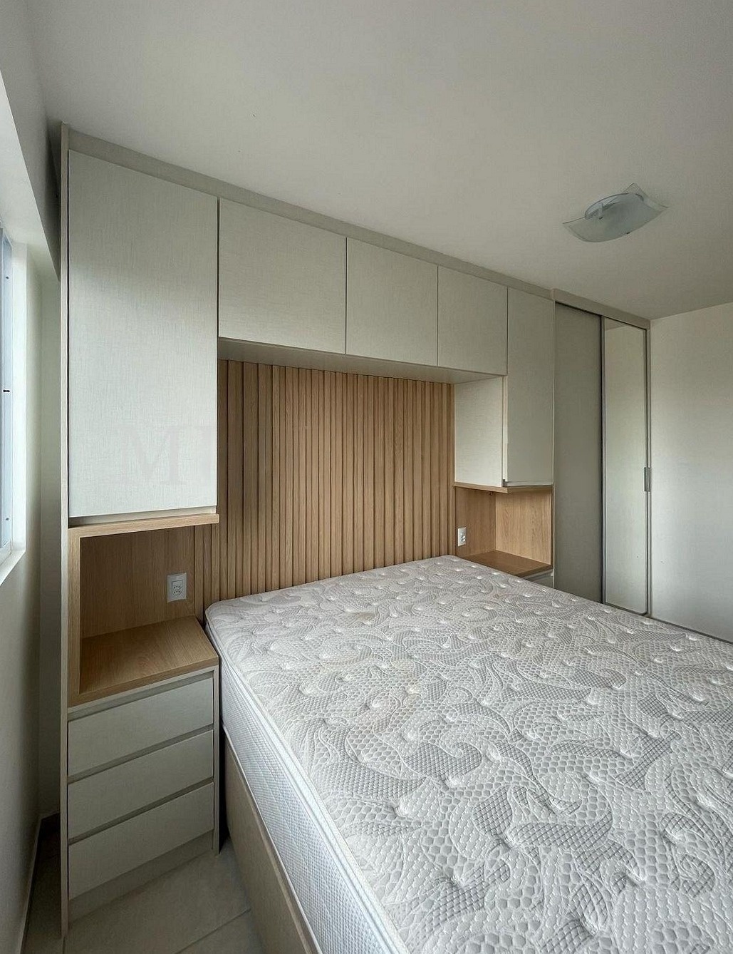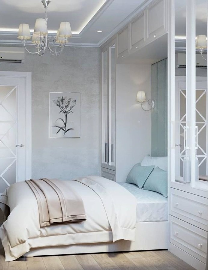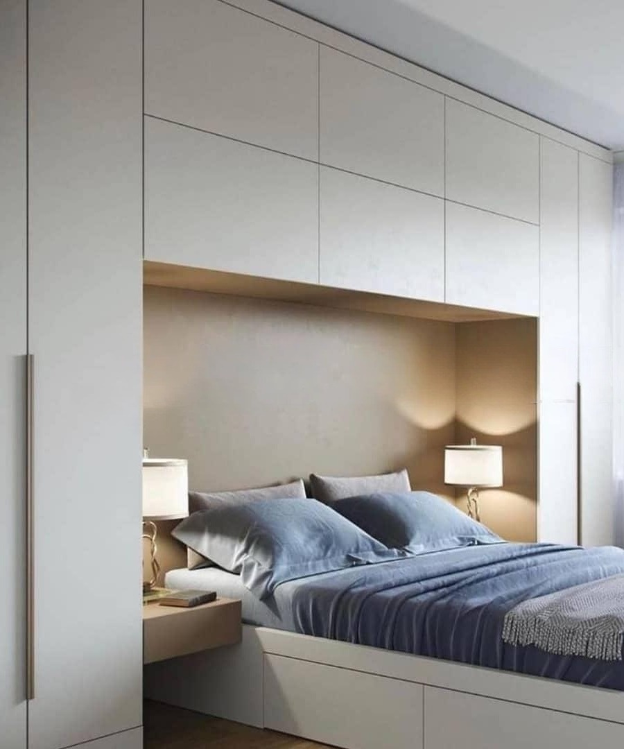 Минималистичный белый шкаф на заказ вокруг кровати «Модель 1352»