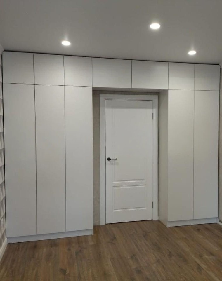 Встроенный белый шкаф вокруг двери «Модель 1304»