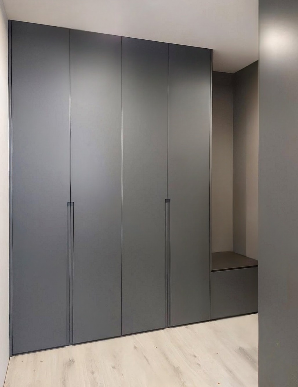 Серый распашной шкаф с интегрированными ручками «Модель 1220»