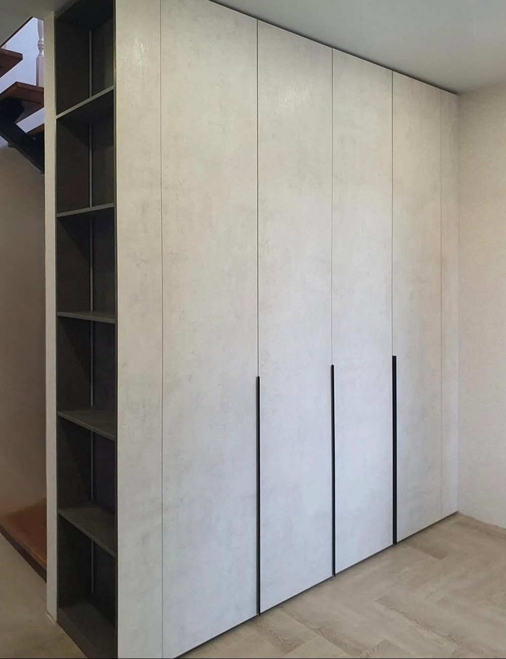 Серый распашной шкаф с интегрированными ручками «Модель 1220»