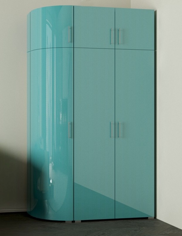 Трехстворчатый радиусный шкаф голубого цвета «Модель 1233»