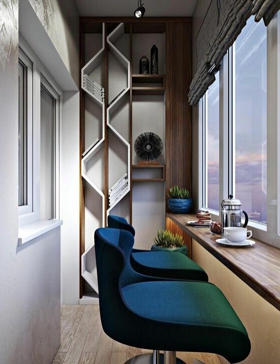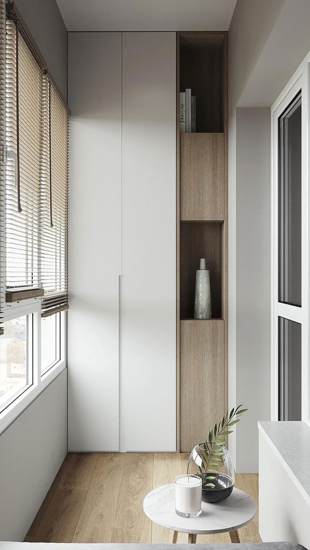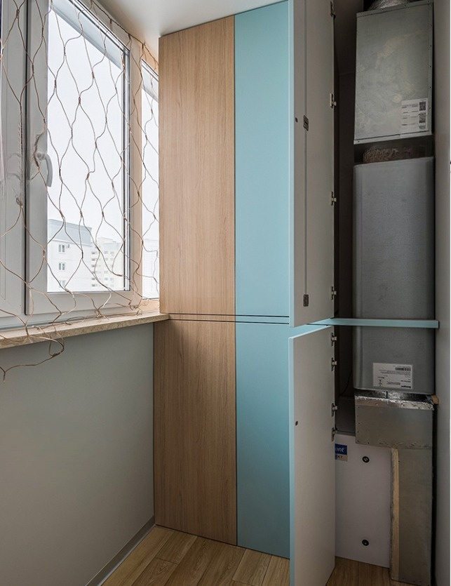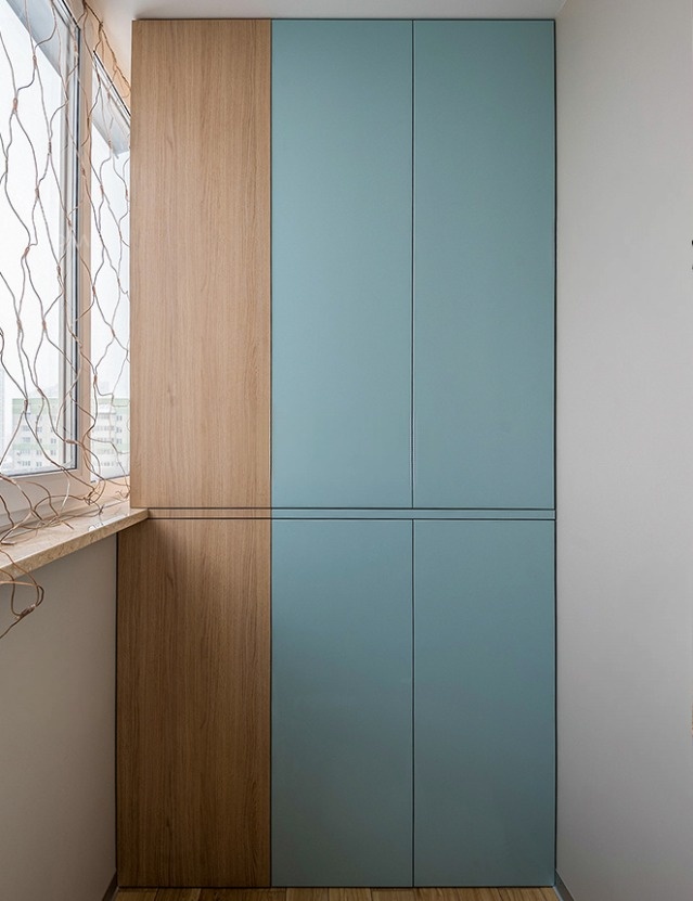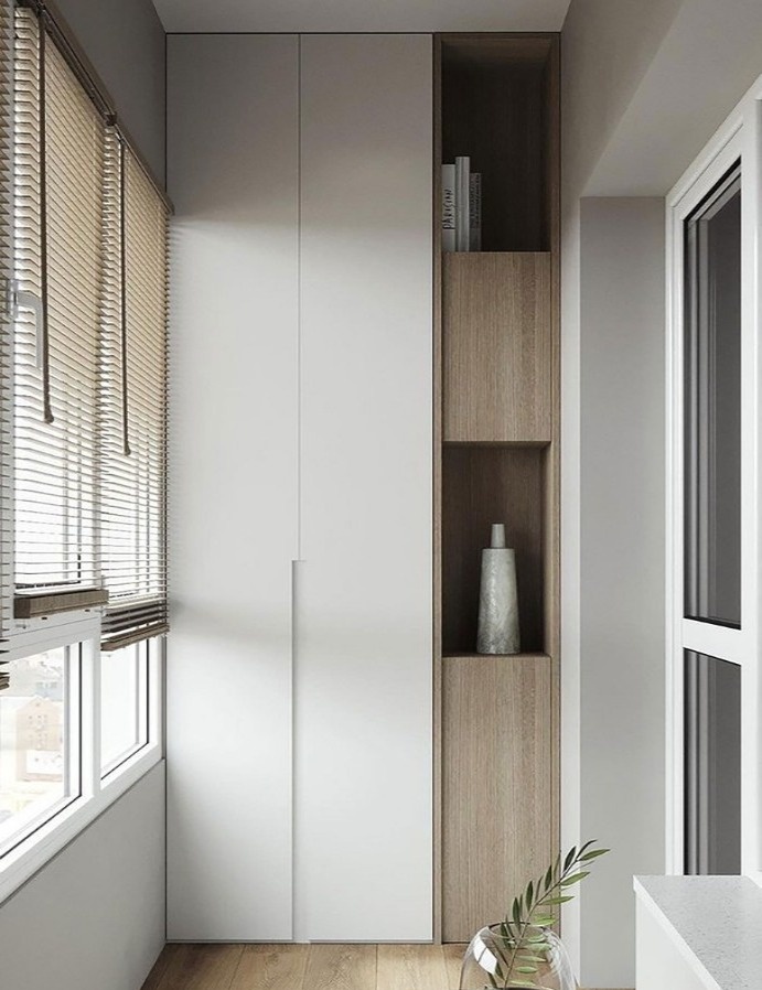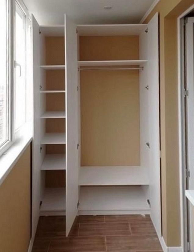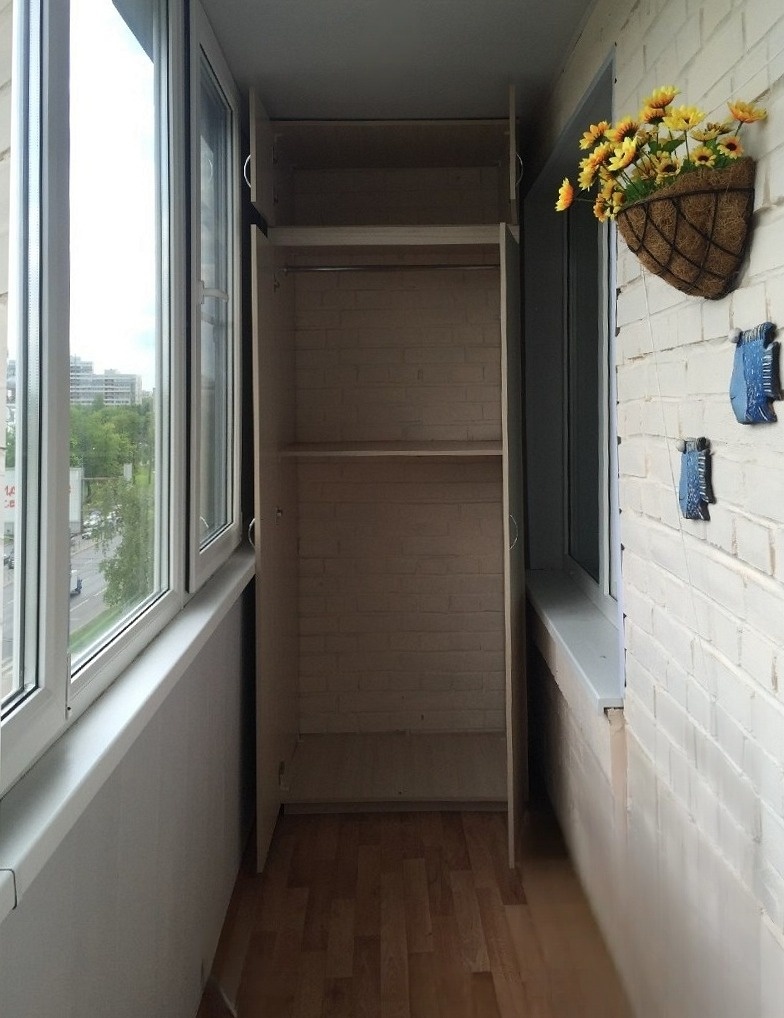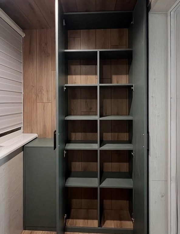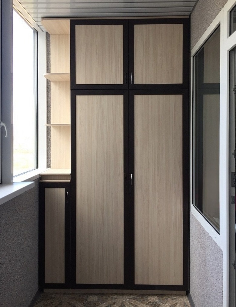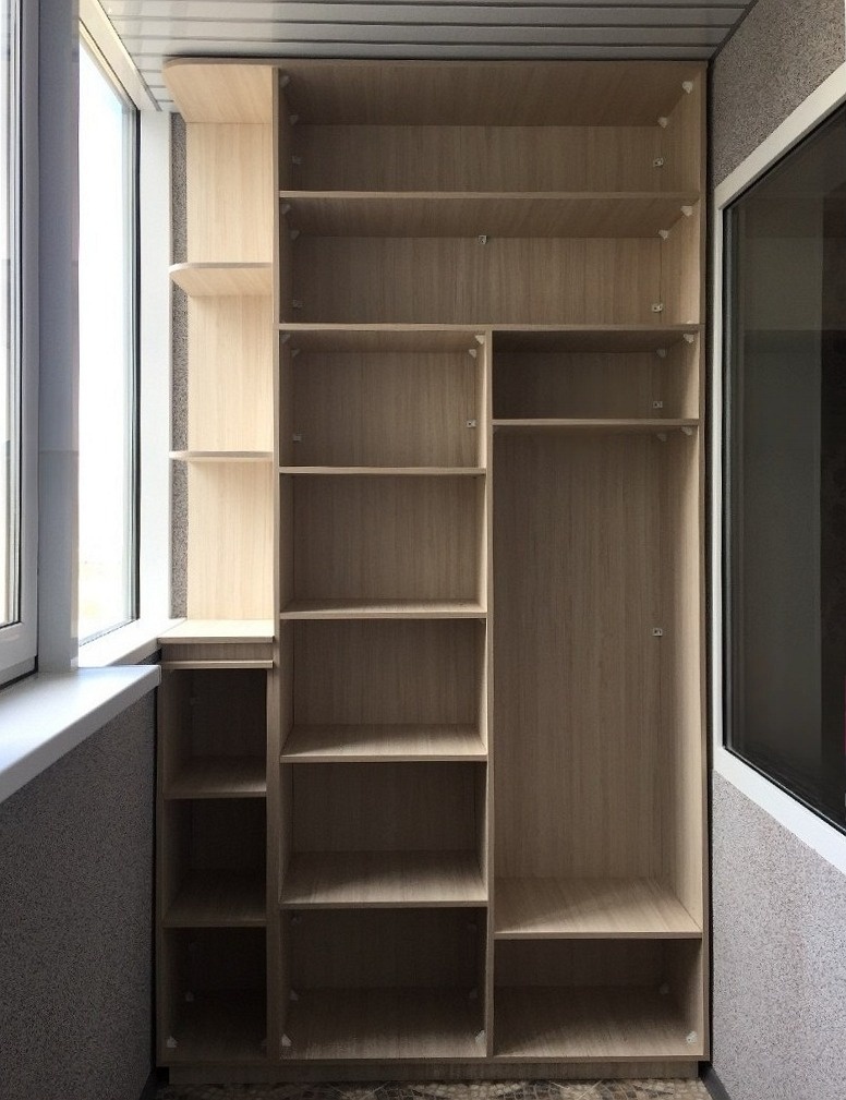 Комбинированный встроенный шкаф из ЛДСП на балкон «Модель 981»