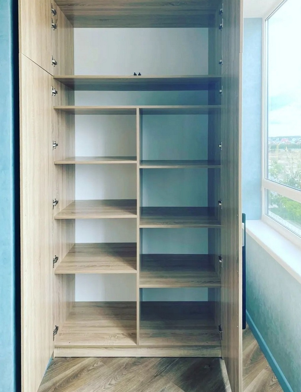 Встроенный шкаф с полками на балкон «Модель 1014»