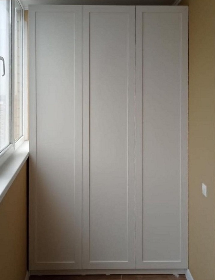 Распашной шкаф на балкон цвета ясень на заказ «Модель 936»
