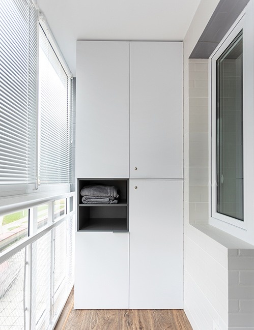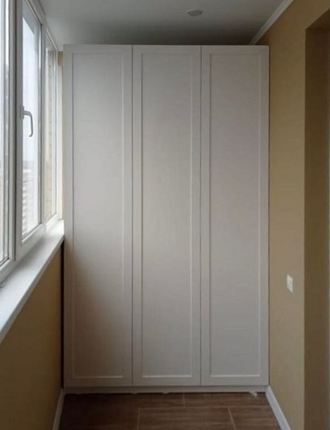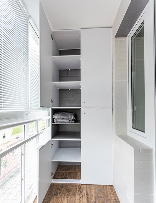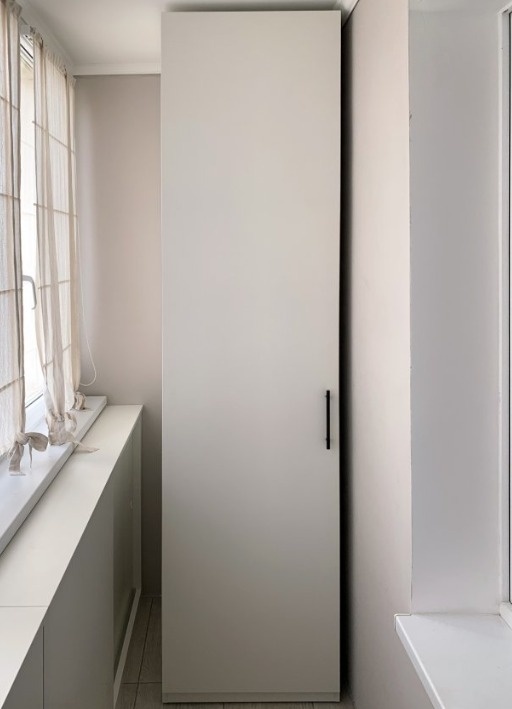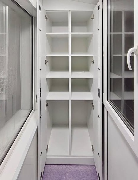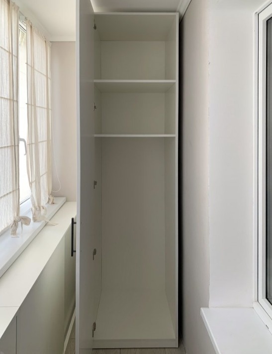 Встраиваемый на лоджию шкаф из ЛДСП белого цвета «Модель 1017»