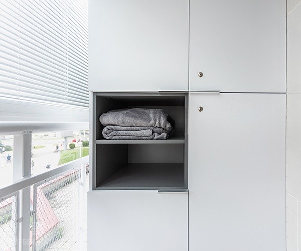 Встроенный на балкон белый жалюзийный шкаф «Модель 963»