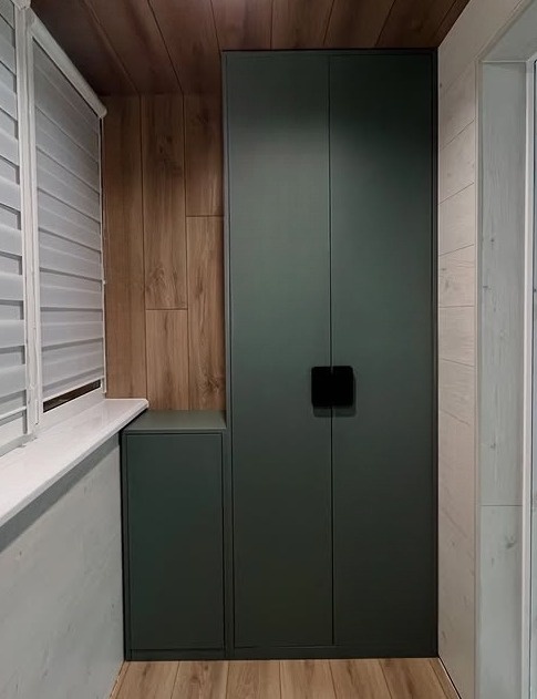 Классический шкаф зеленого цвета ИЗ МДФ на балкон «Модель 966»