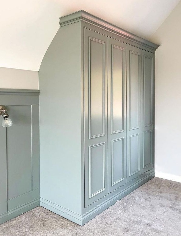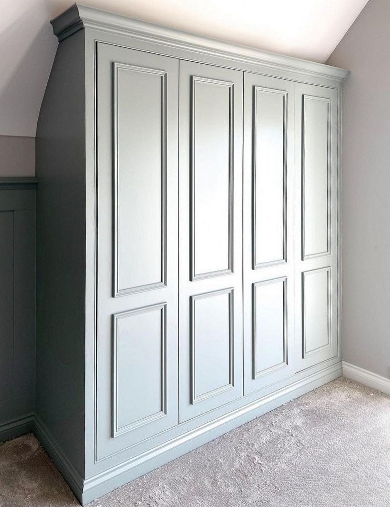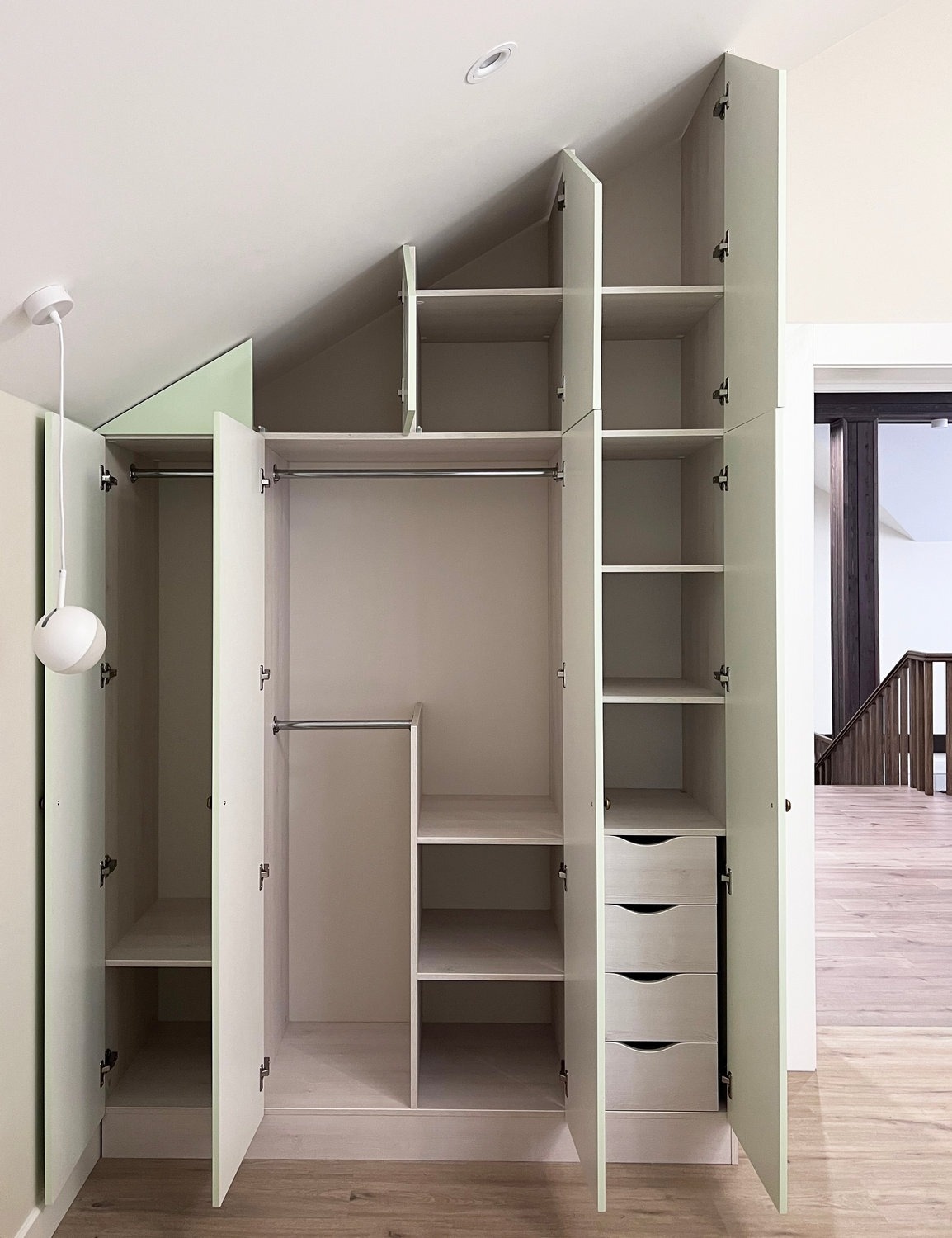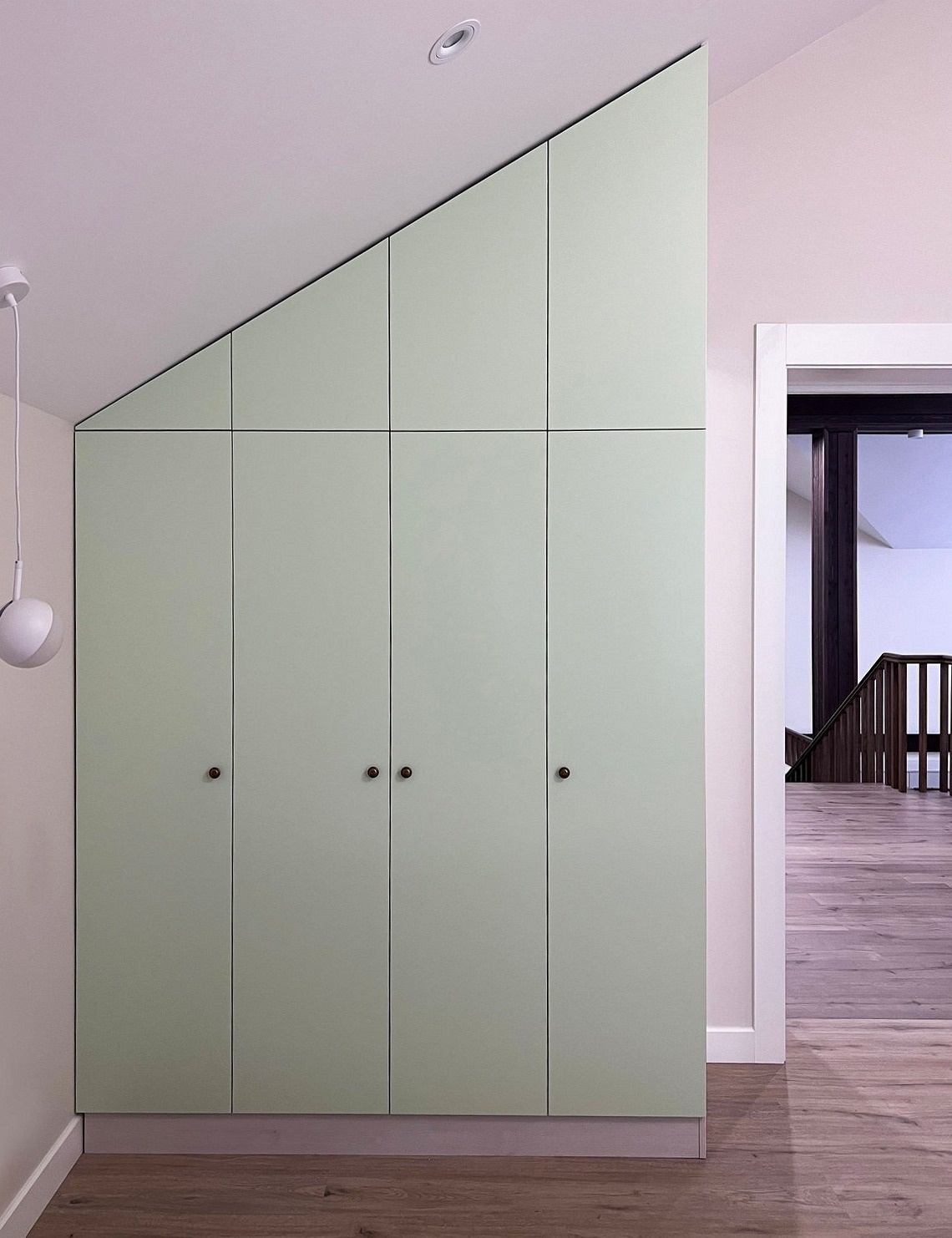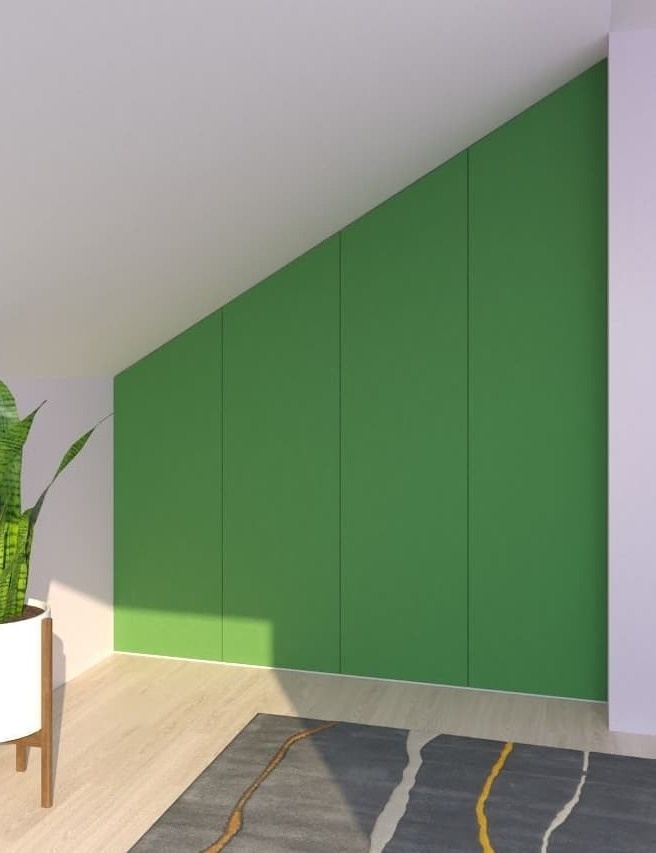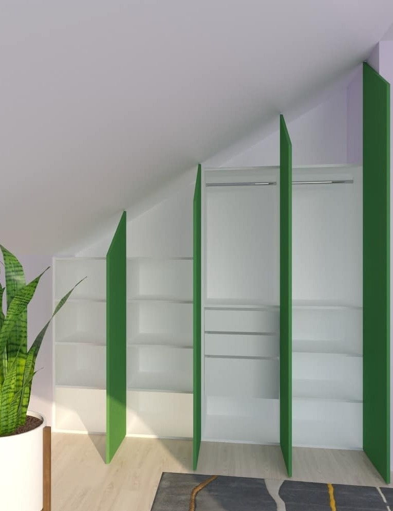 Встроенный шкаф зеленого цвета на мансарду «Модель 149»