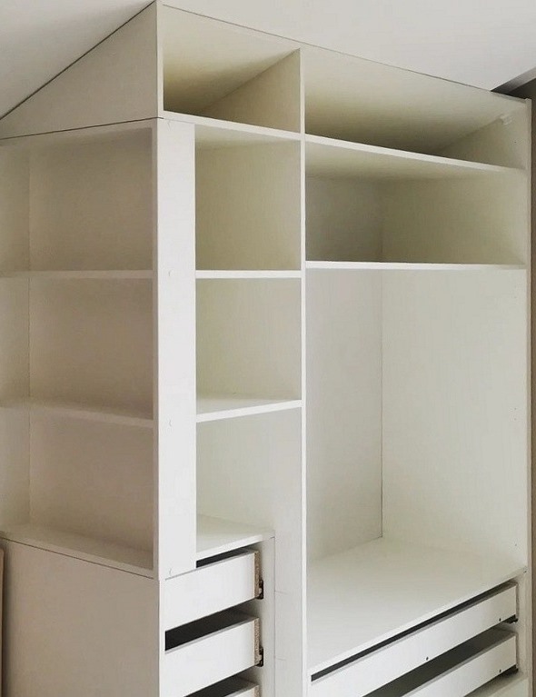Встроенный шкаф с открытыми полками на мансарду «Модель 151»