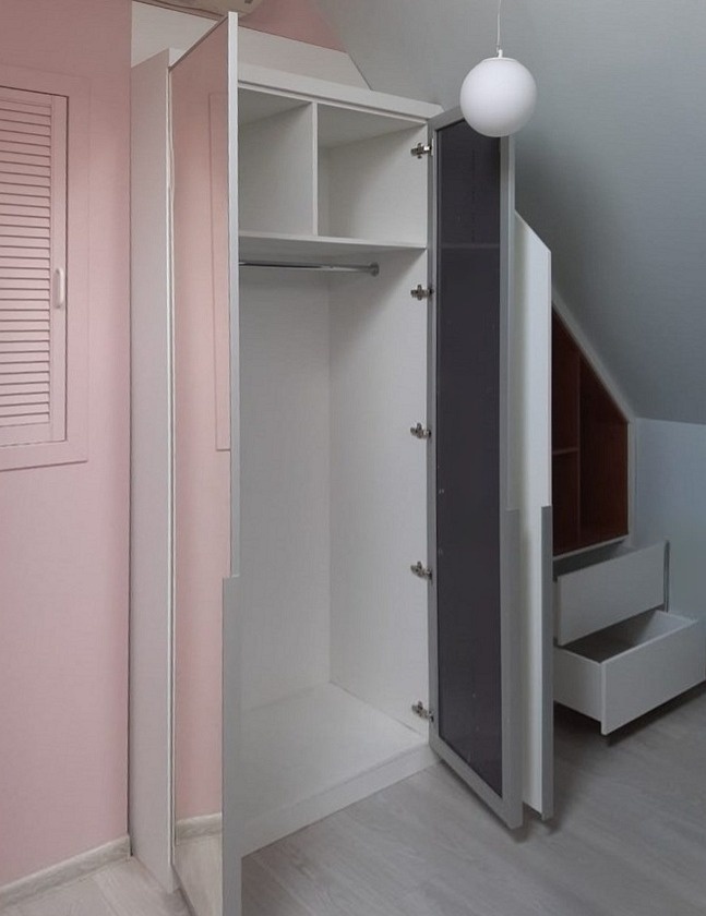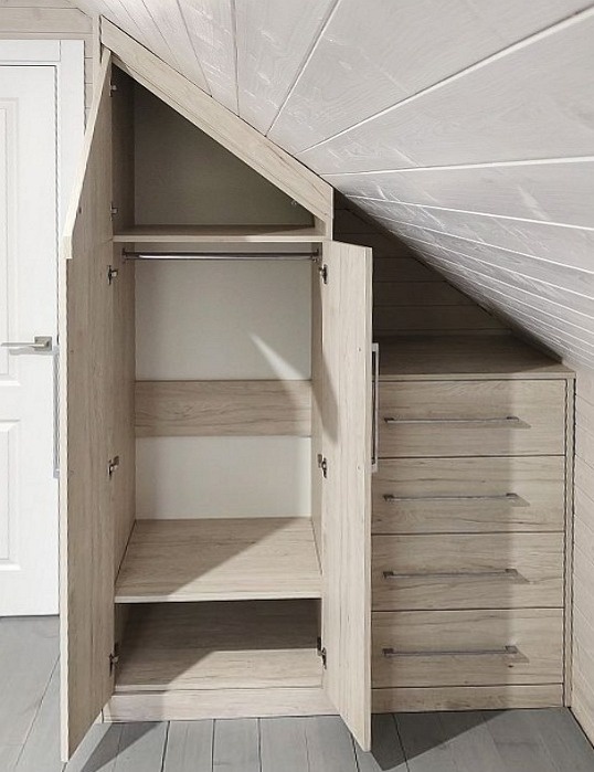 Маленький шкаф с комодом под скос крыши «Модель 1138»
