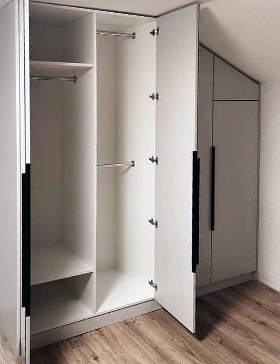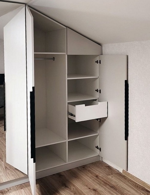 Угловой распашной шкаф из ЛДСП в мансарду «Модель 1135»
