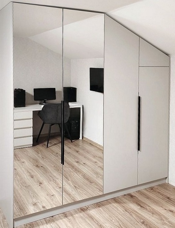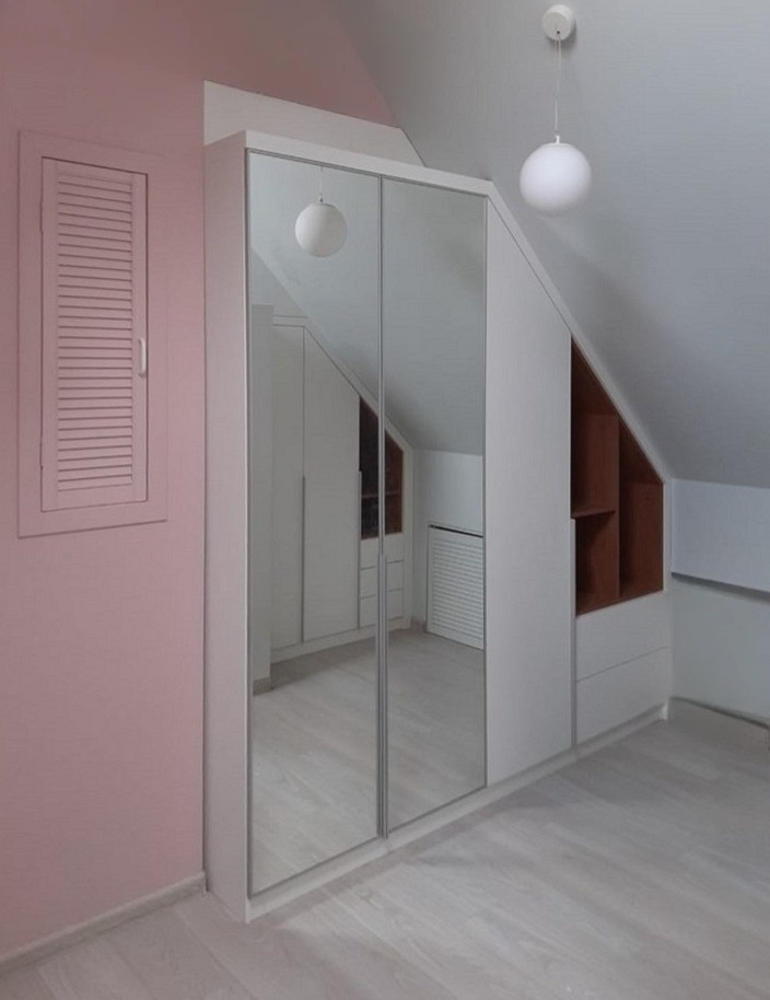 Встраиваемый распашной зеркальный шкаф на мансарду «Модель 850»