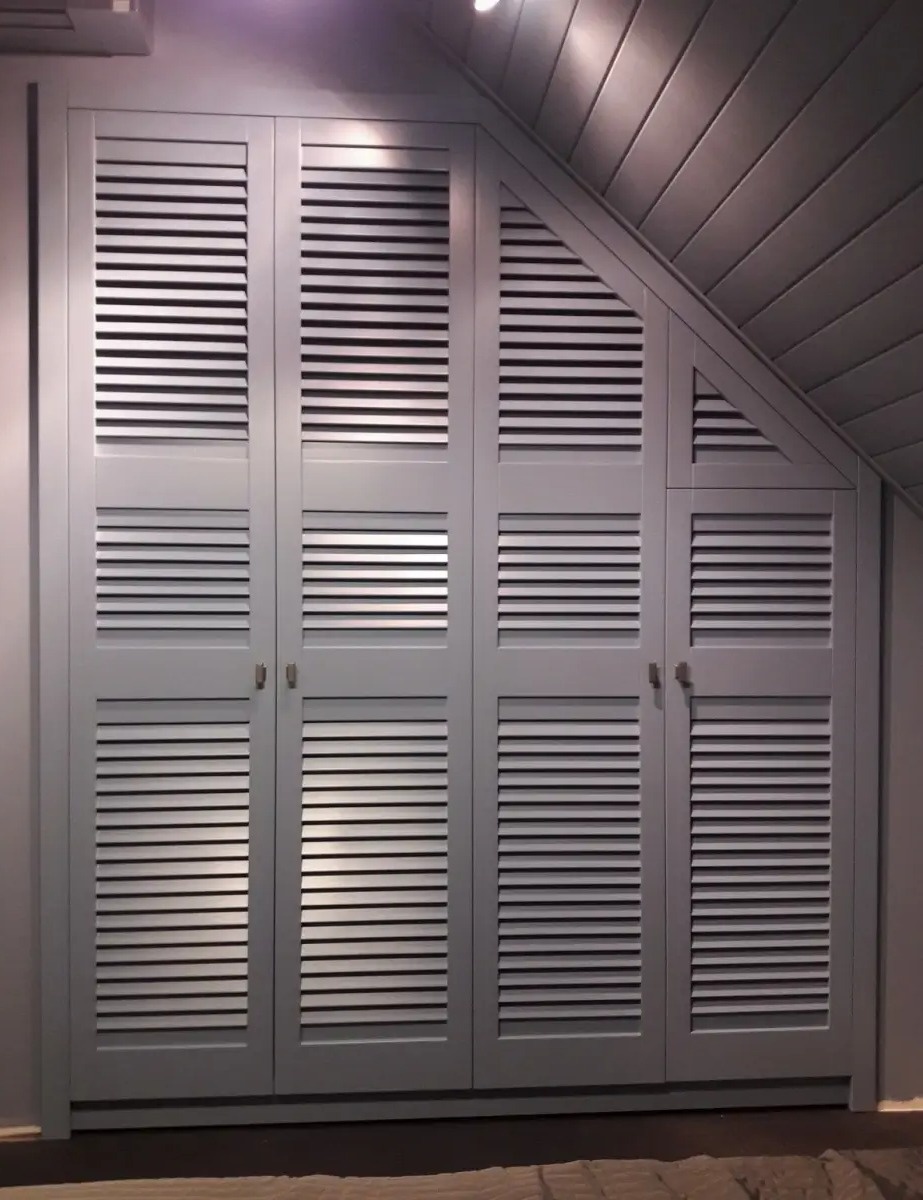 Жалюзийный 4х дверный шкаф на мансарду «Модель 1131»