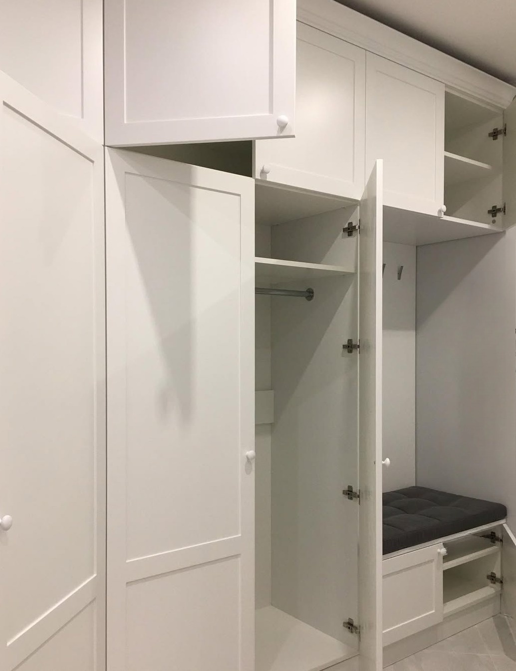 Белая прихожая на заказ с нишей и обувницей «Модель 541»