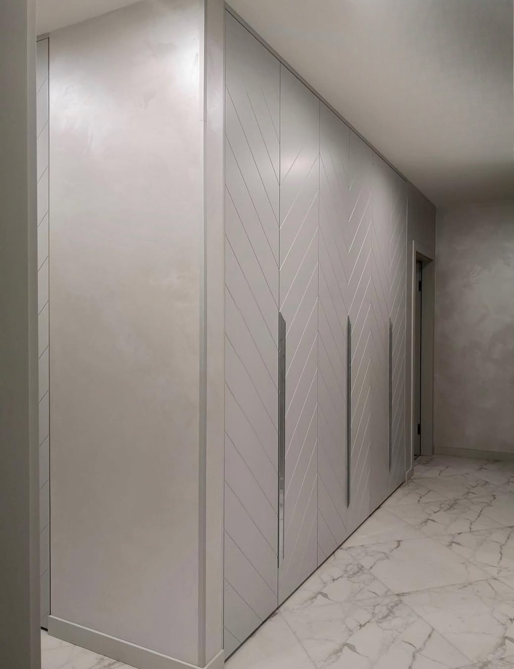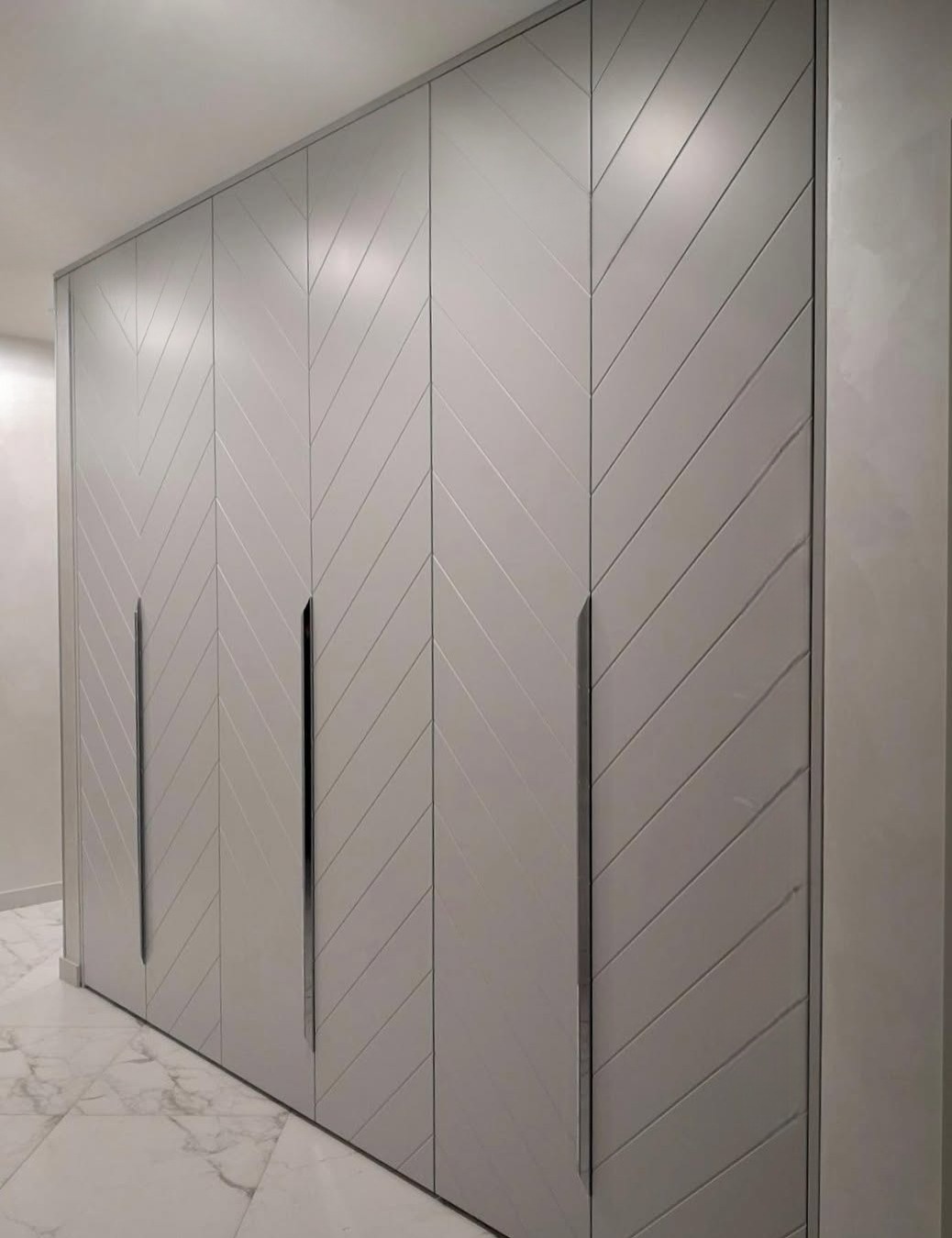 Большой серый шкаф на заказ с фрезерованными дверями «Модель 601»