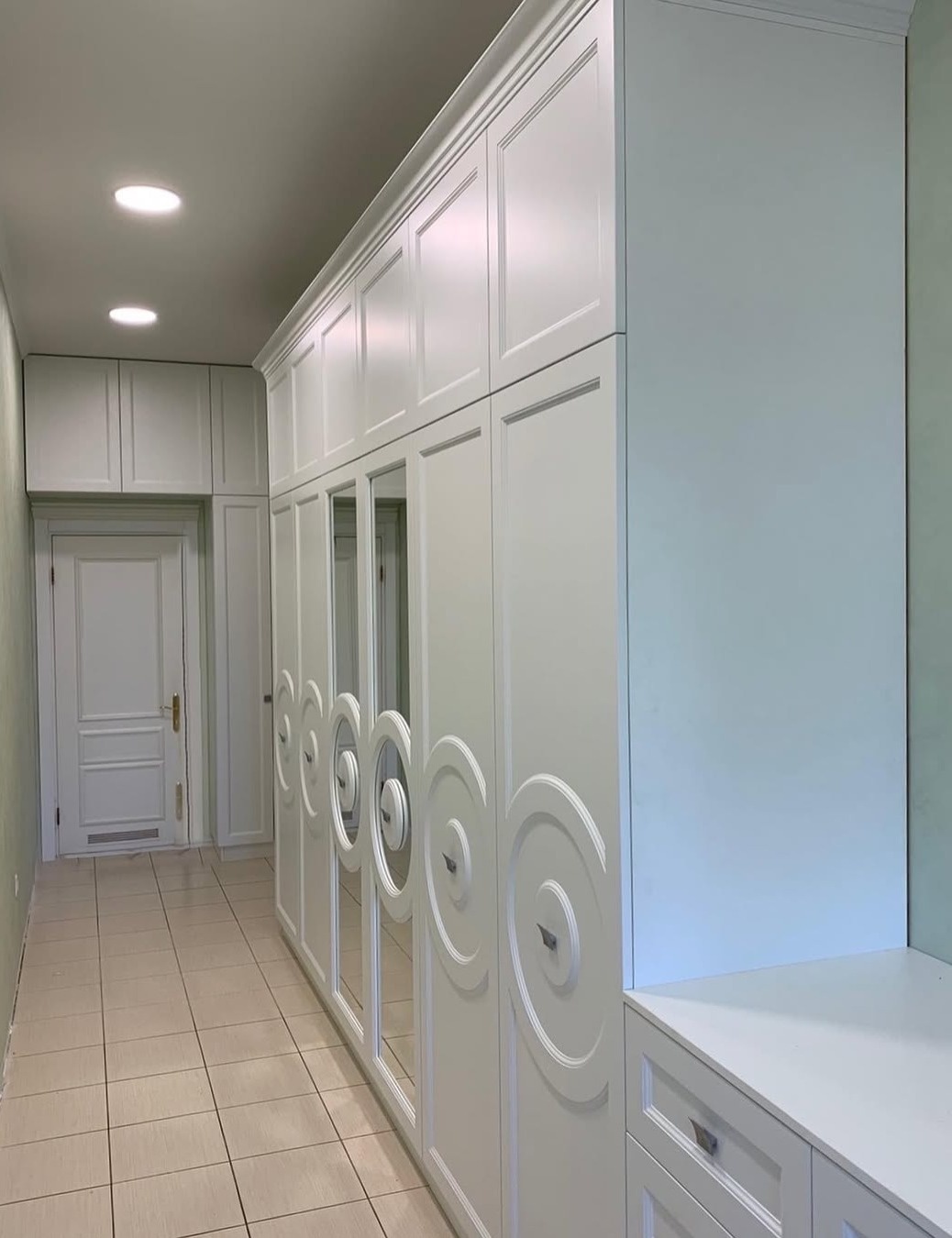 Белый встроенный шкаф под потолок с фрезерованными дверями «Модель 653»