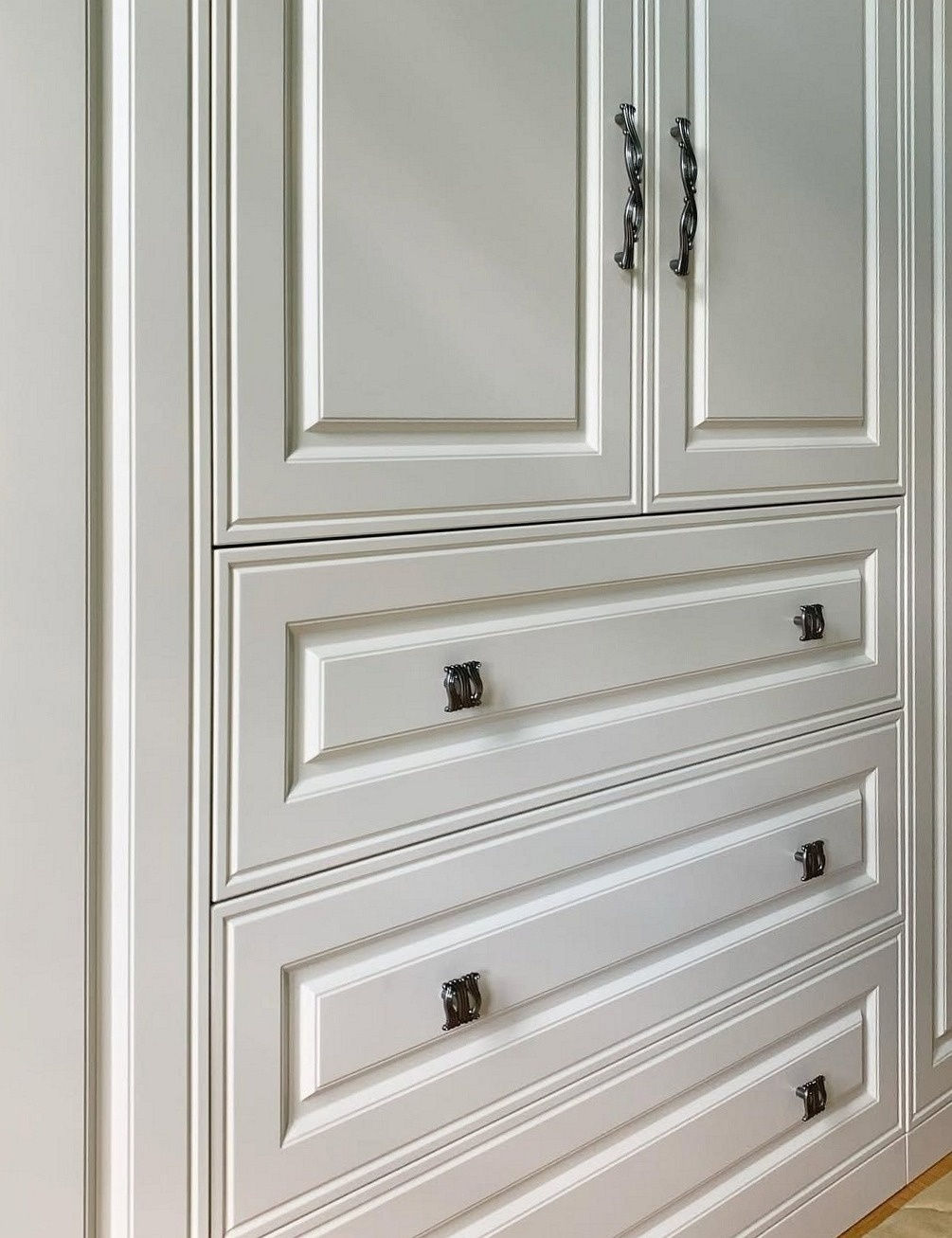 Большой белый шкаф с фрезерованными дверями неоклассика «Модель 648»