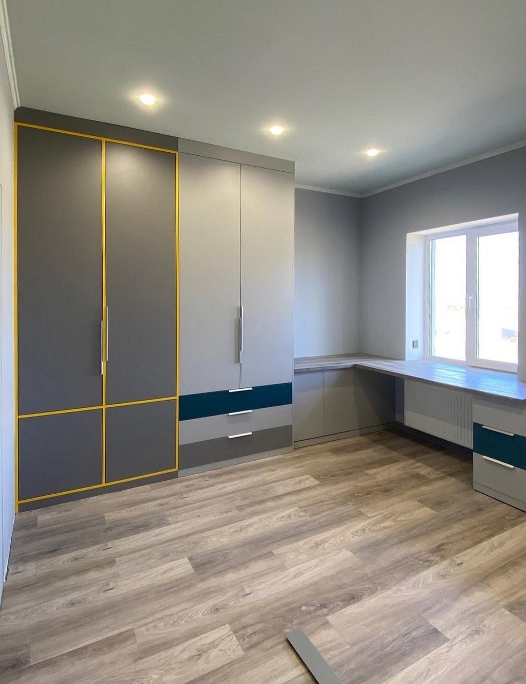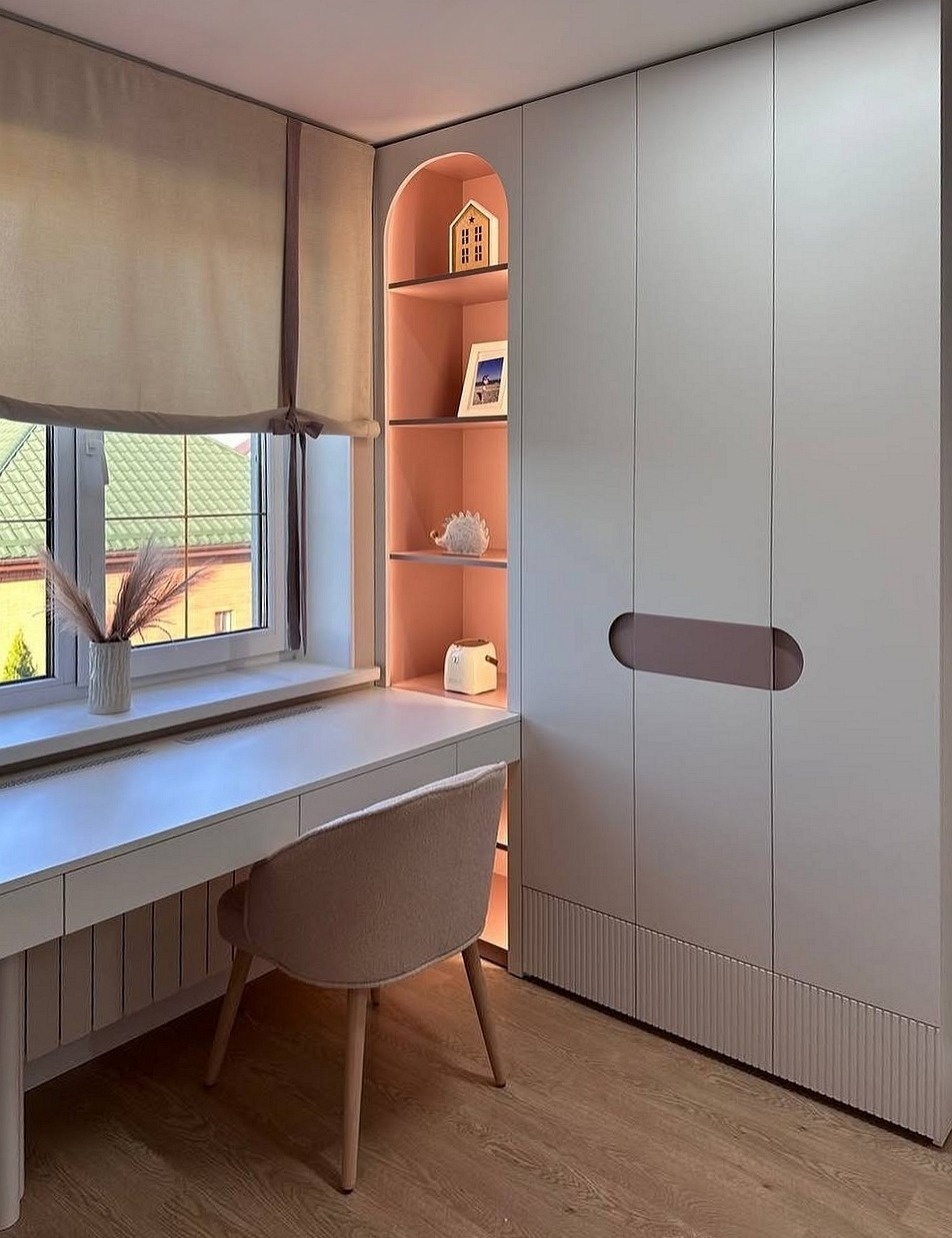 Шкаф МДФ с фрезерованными дверями и столом в детскую «Модель 976»