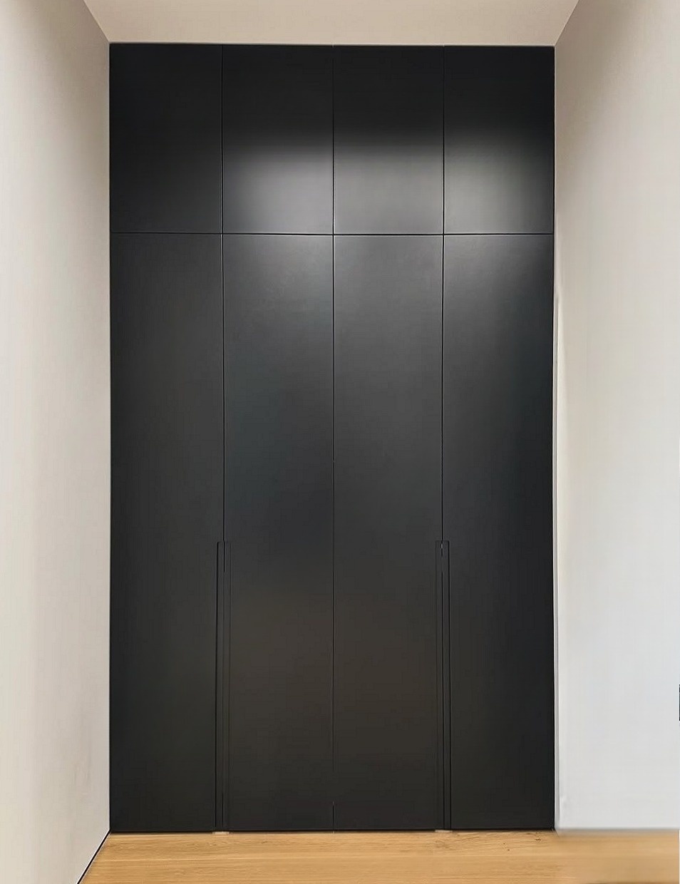Встроенный черный шкаф с антресолью из ЛДСП «Модель 1301»