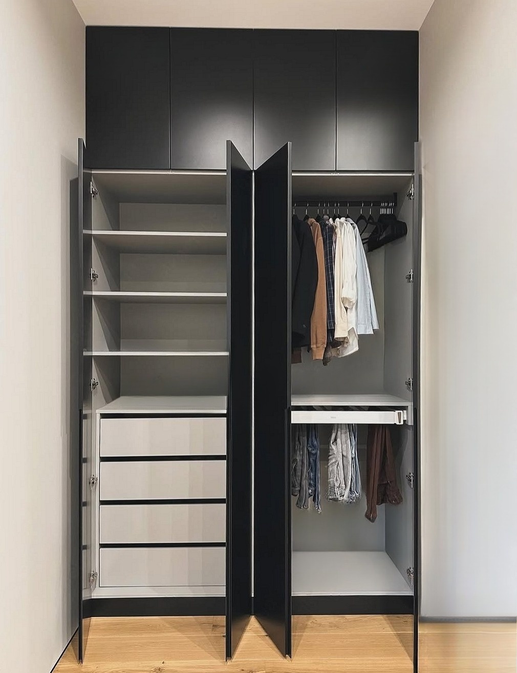 Встраиваемый черный шкаф-гардеробная «Модель 1258»