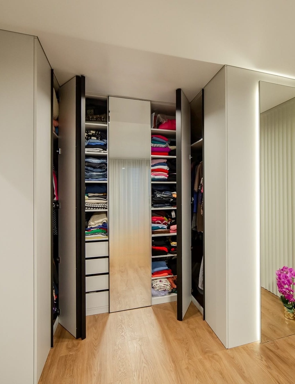Широкий угловой встроенный шкаф вокруг кровати «Модель 1262»