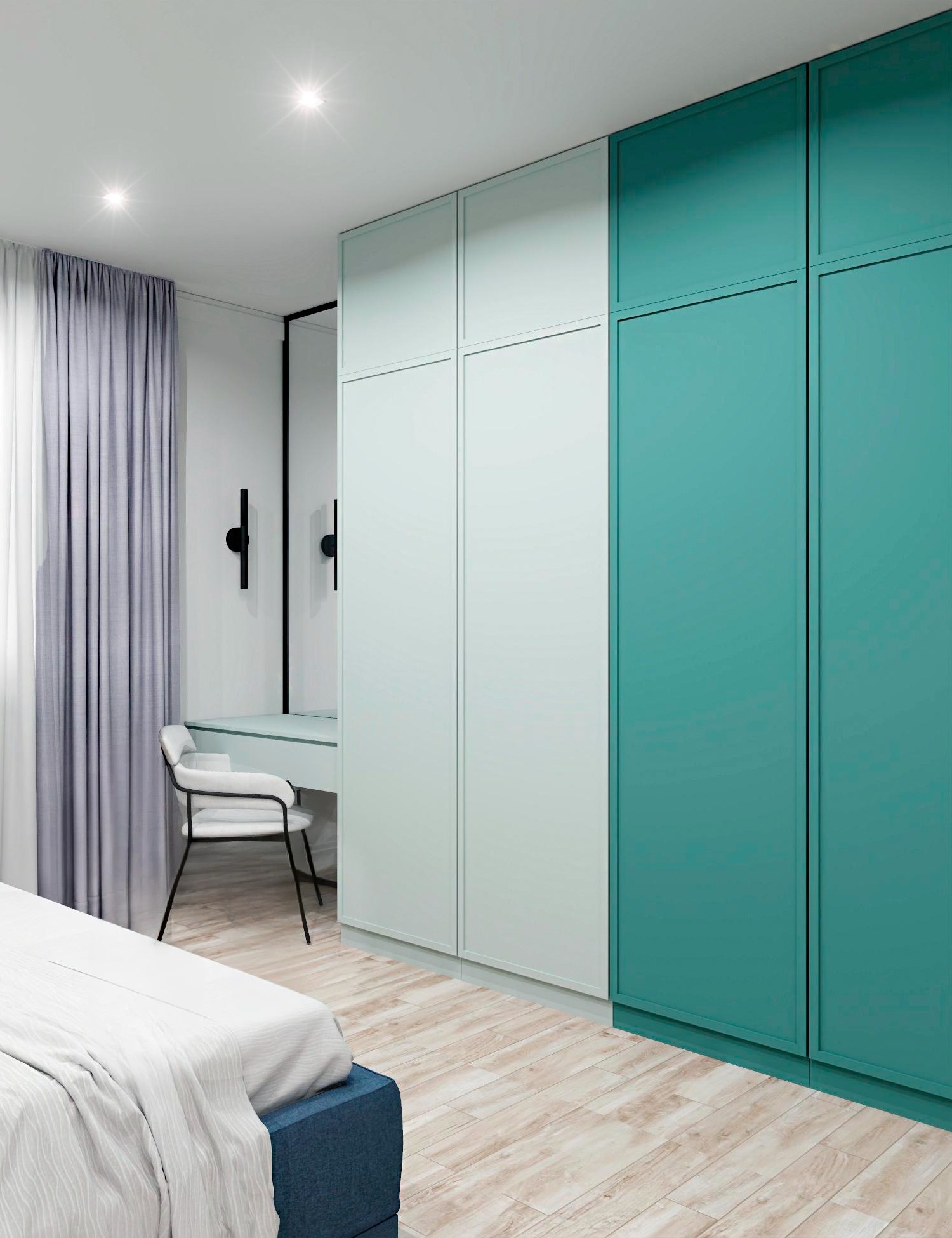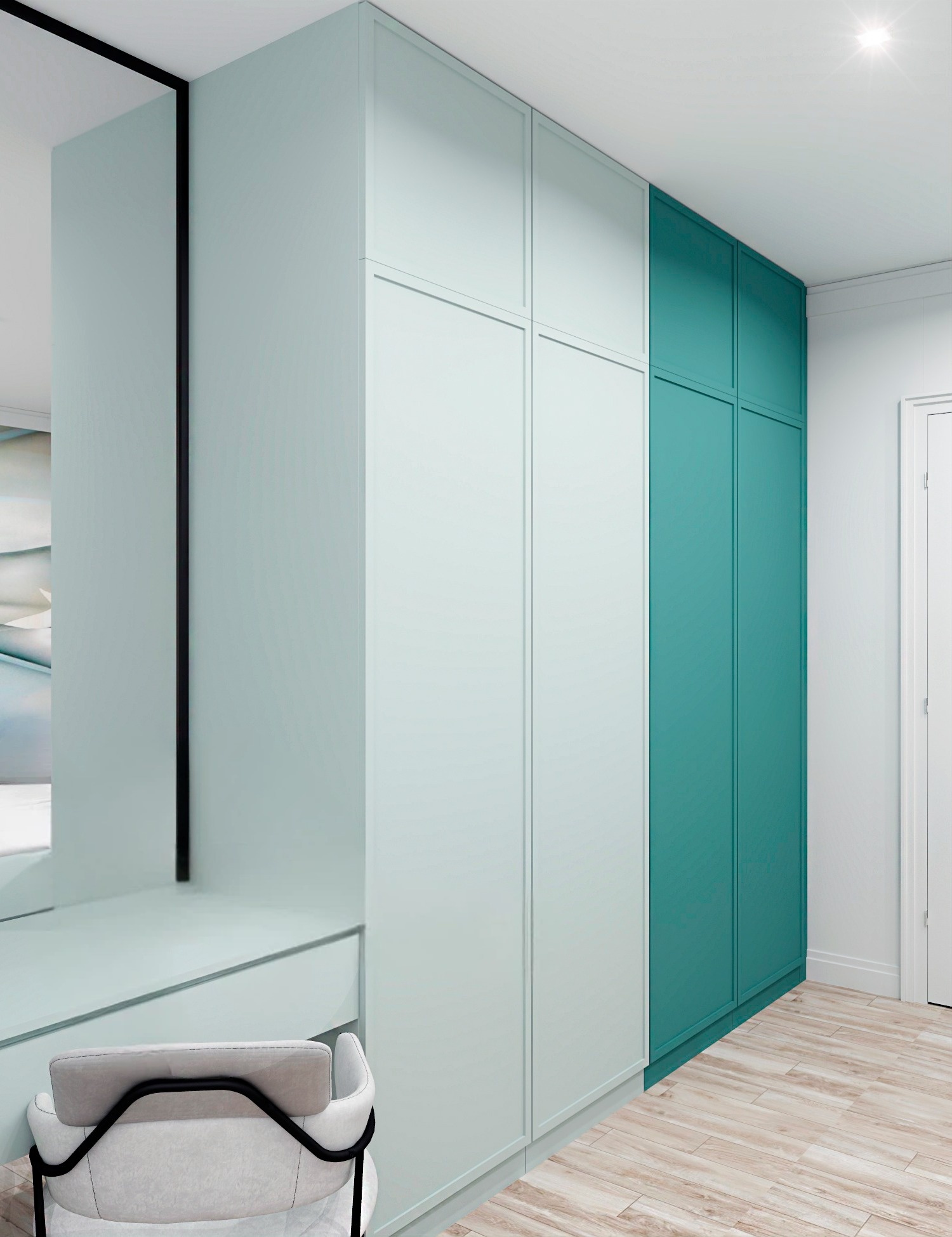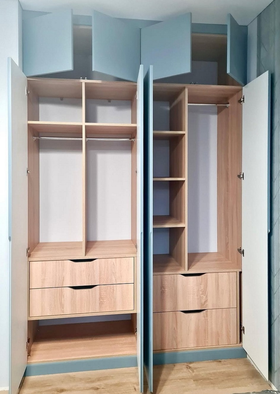 Встраиваемый в нишу голубой шкаф на заказ «Модель 1335»