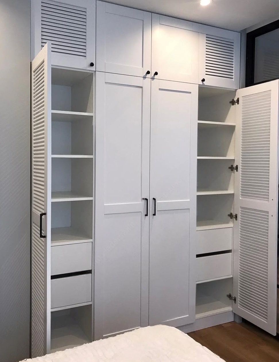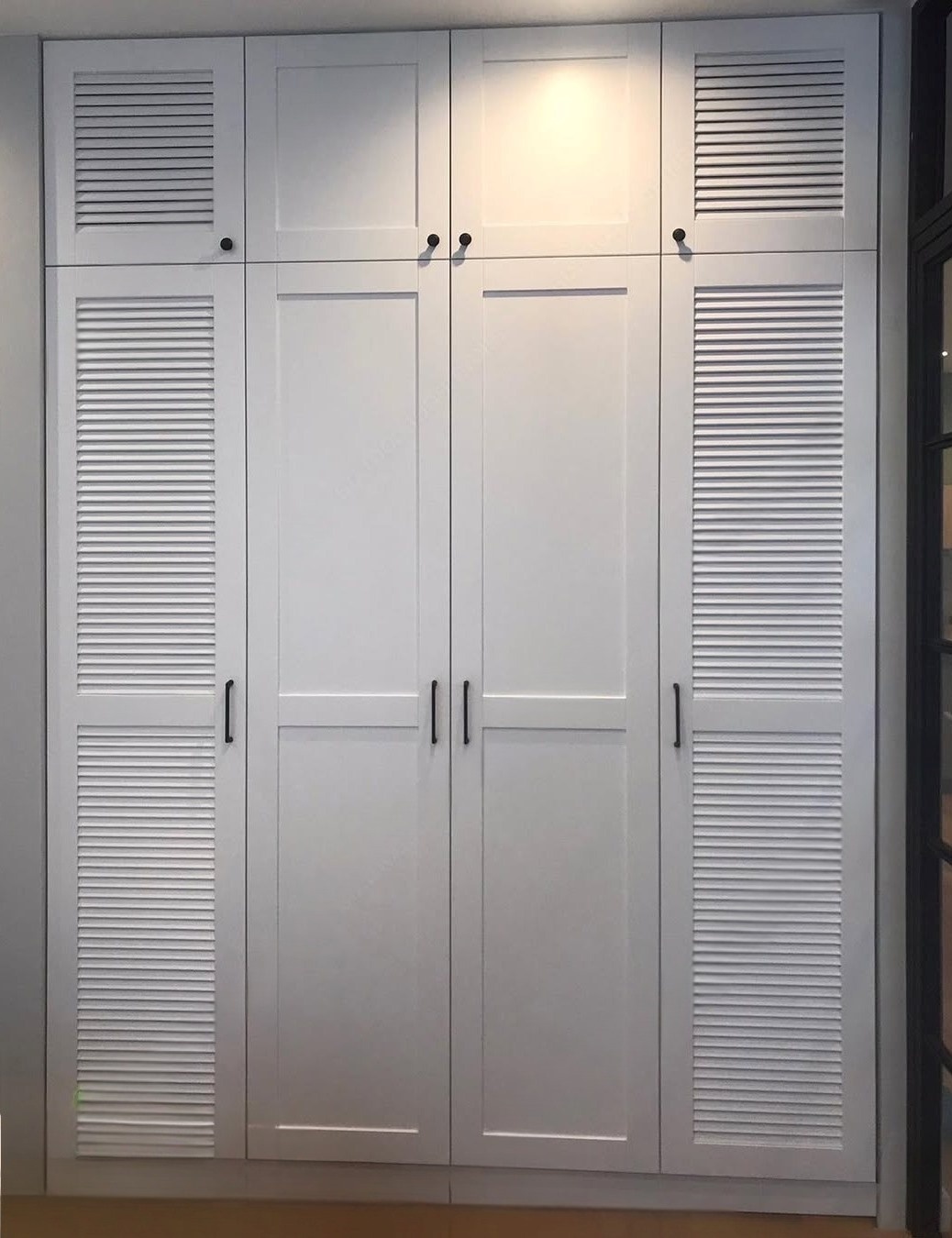 Встраиваемый в нишу 4х створчатый шкаф с жалюзийными дверями «Модель 1345»
