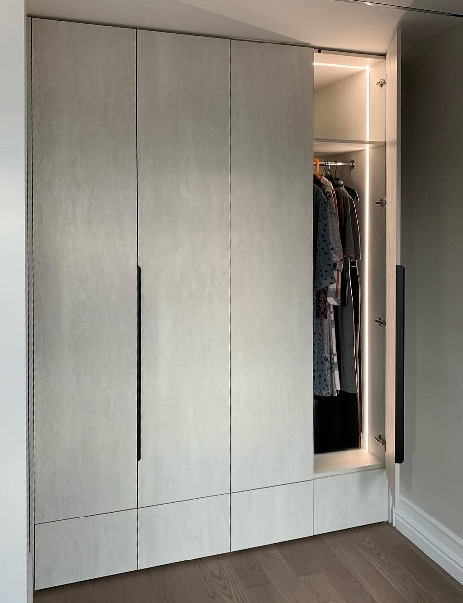 Распашной шкаф над кроватью с подсветкой и антресолью «Модель 1331»