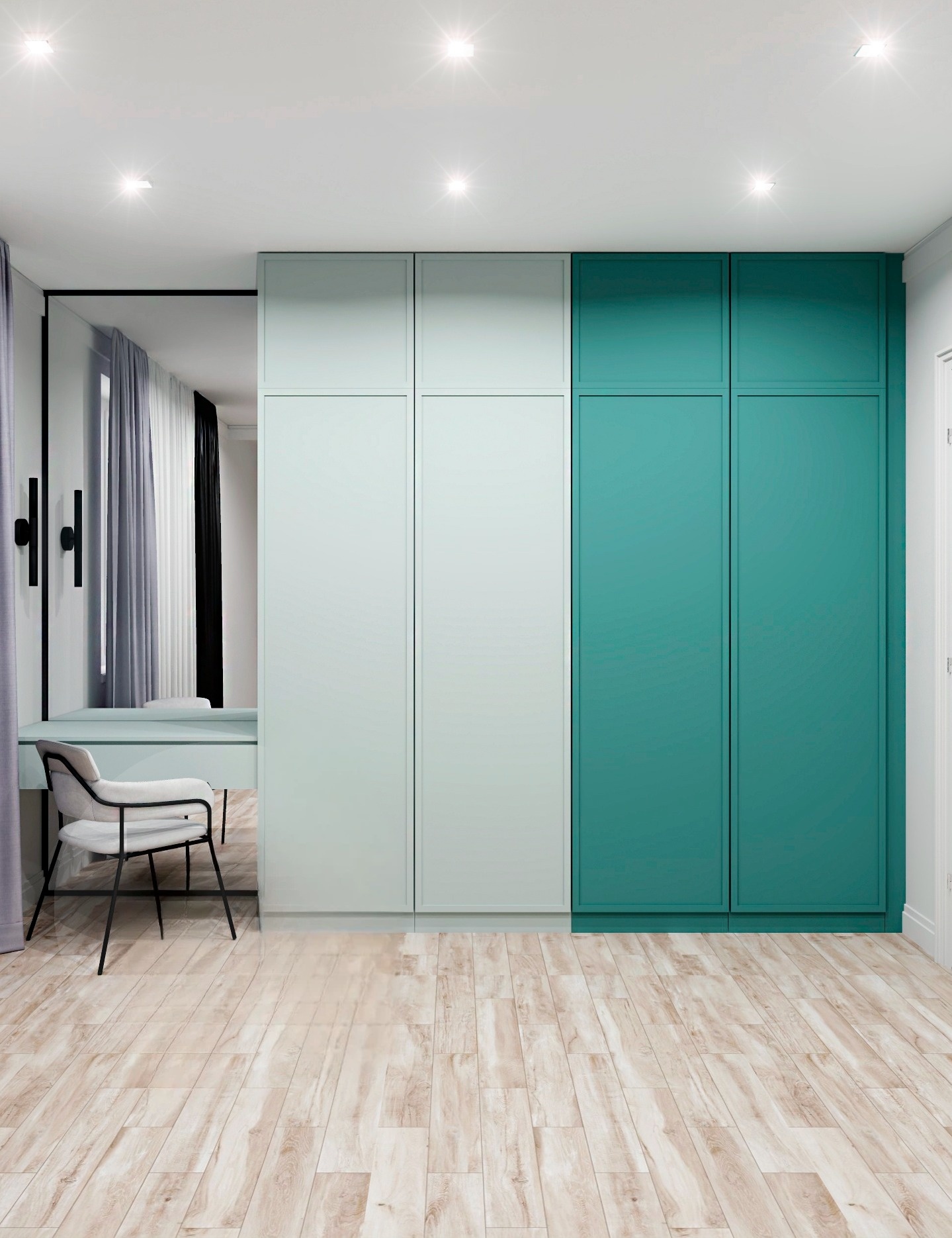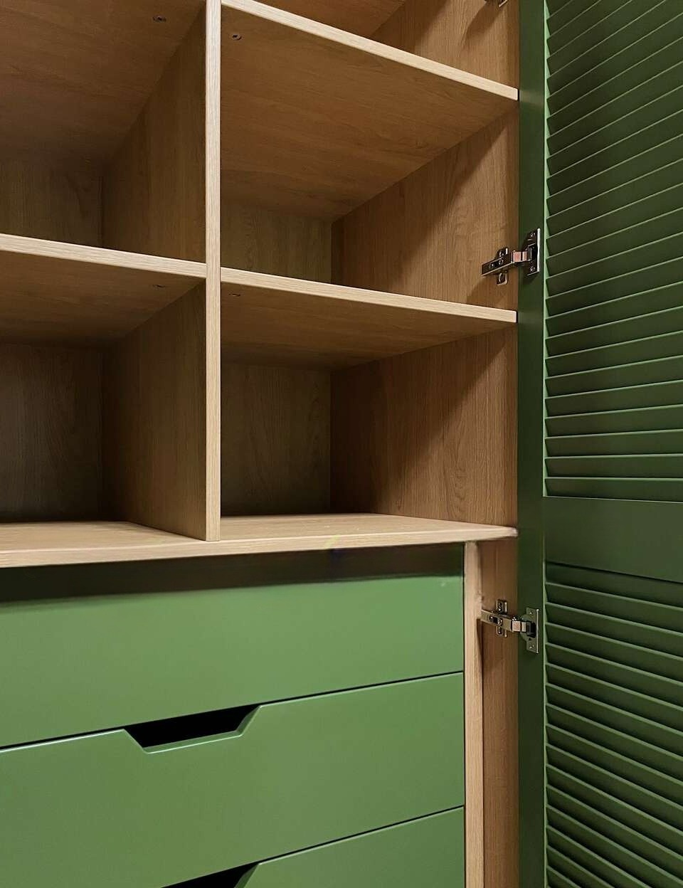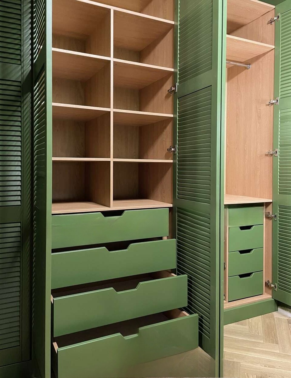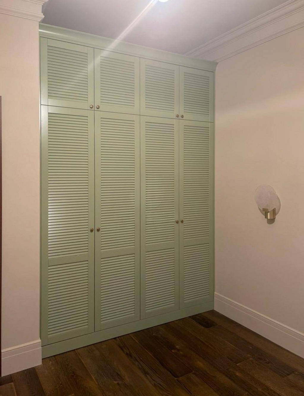 Встроенный шкаф с жалюзийными зелёными дверями «Модель 1268»