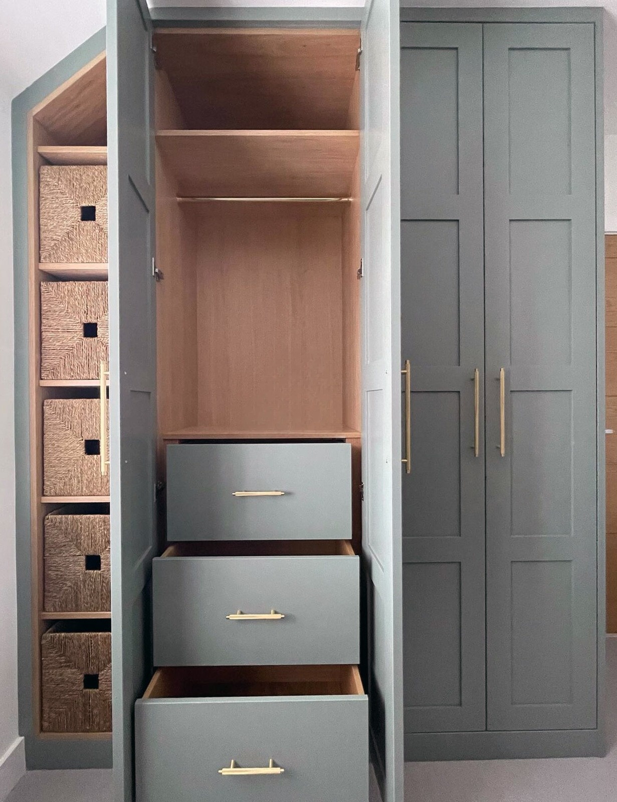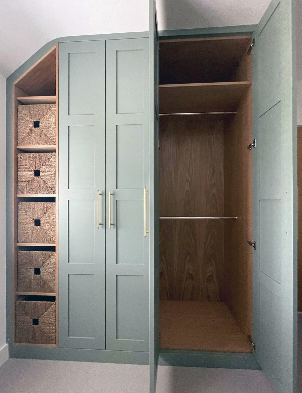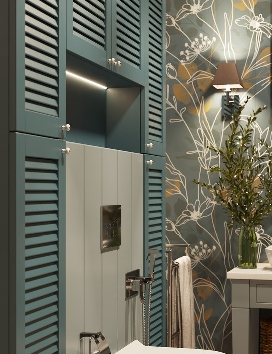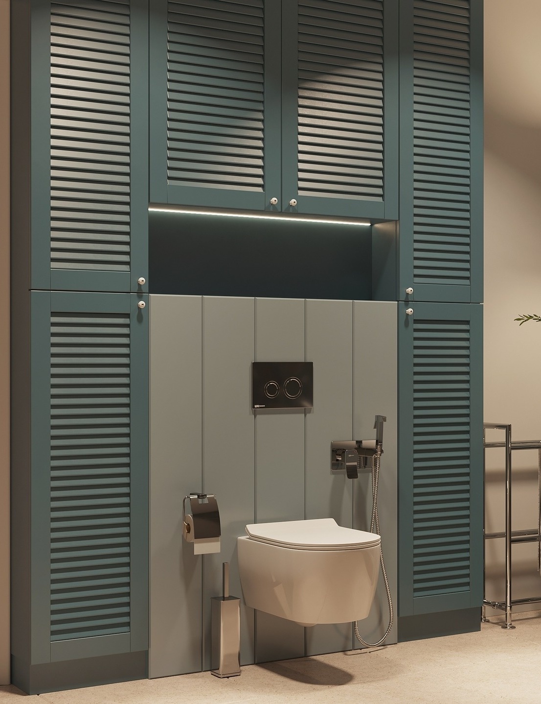 Встроенный шкаф с жалюзийными зелёными дверями «Модель 1268»
