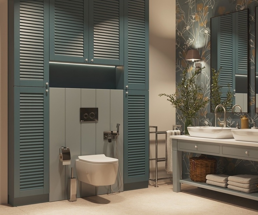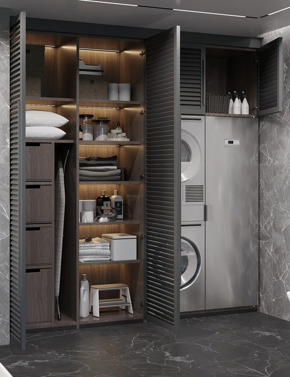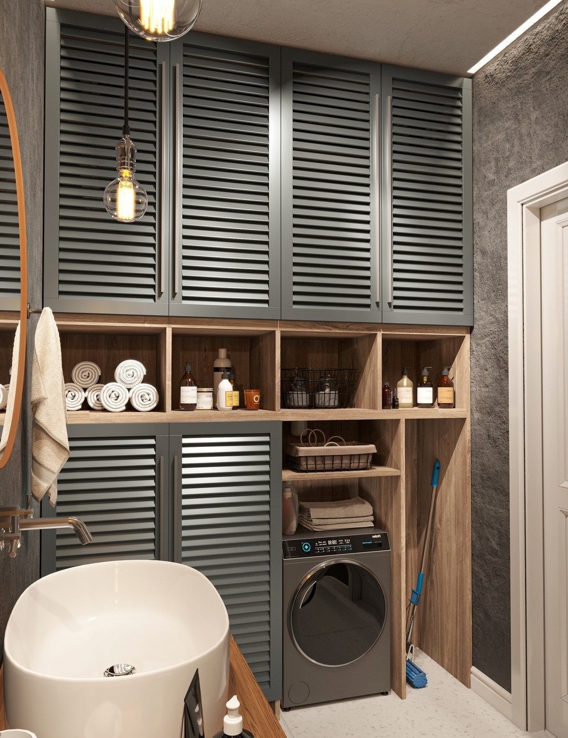 Большой встроенный жалюзийный шкаф в постирочную «Модель 1330»