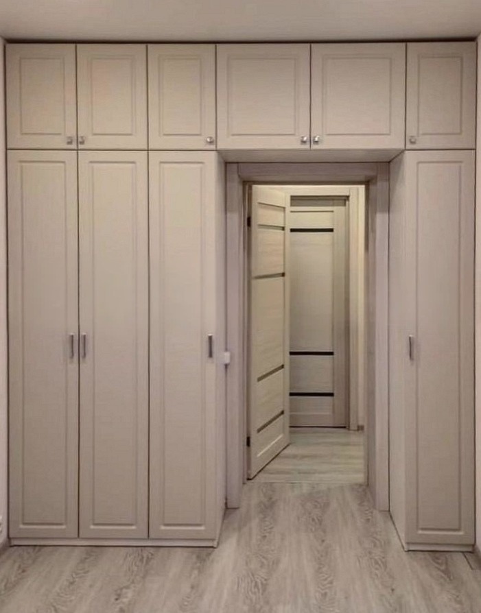 Классический серый шкаф с антресолью вокруг двери «Модель 1261»