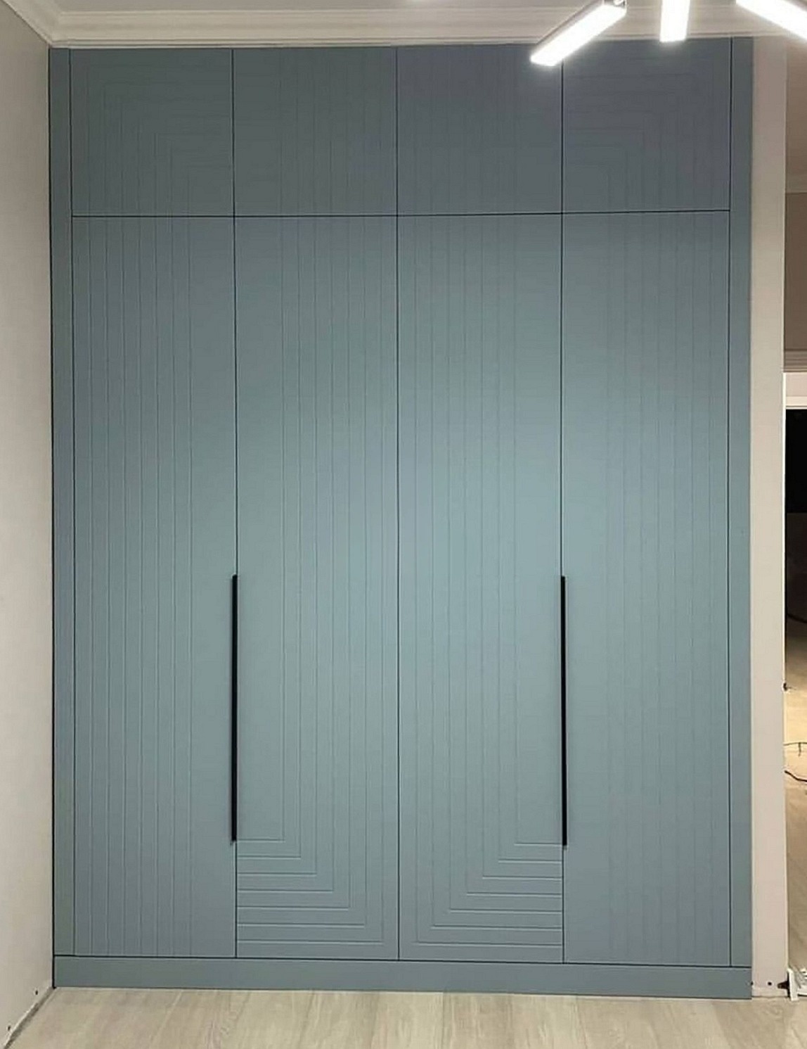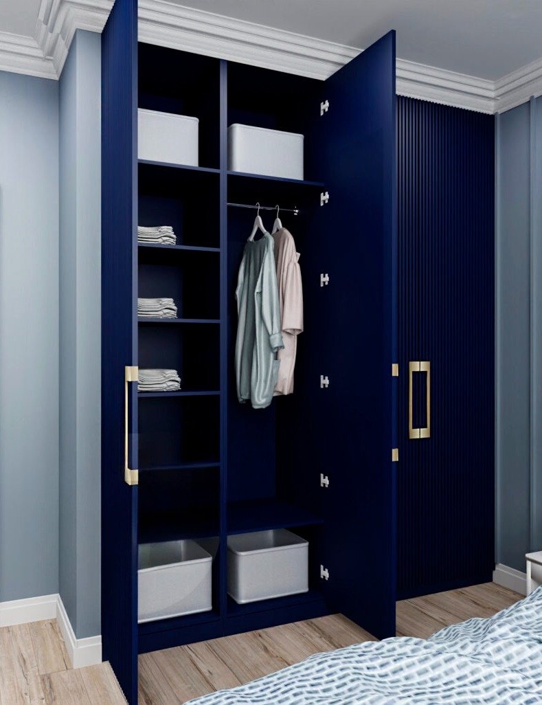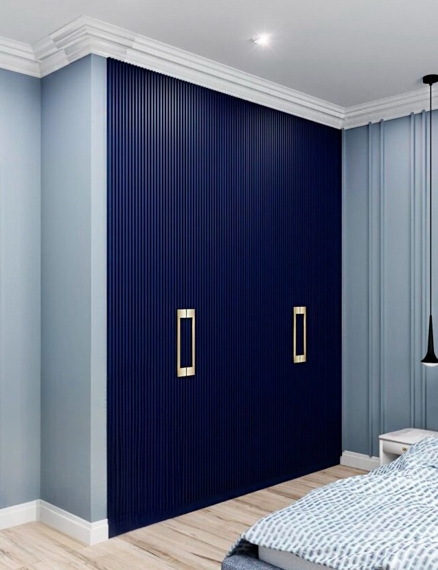 Шкаф в нишу с распашными фрезерованными синими дверями «Модель 1353»