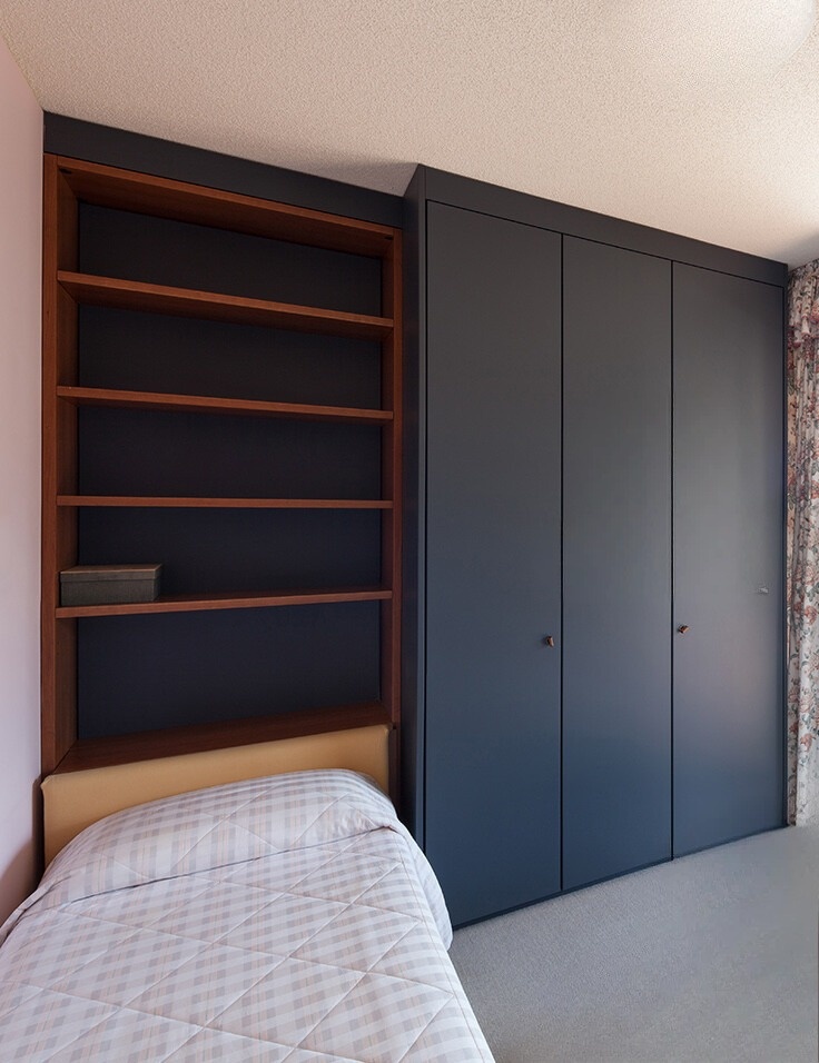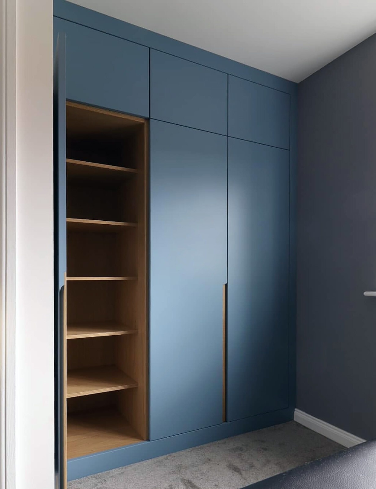 Встроенный синий шкаф со стеллажом в стиле минимализм «Модель 1248»