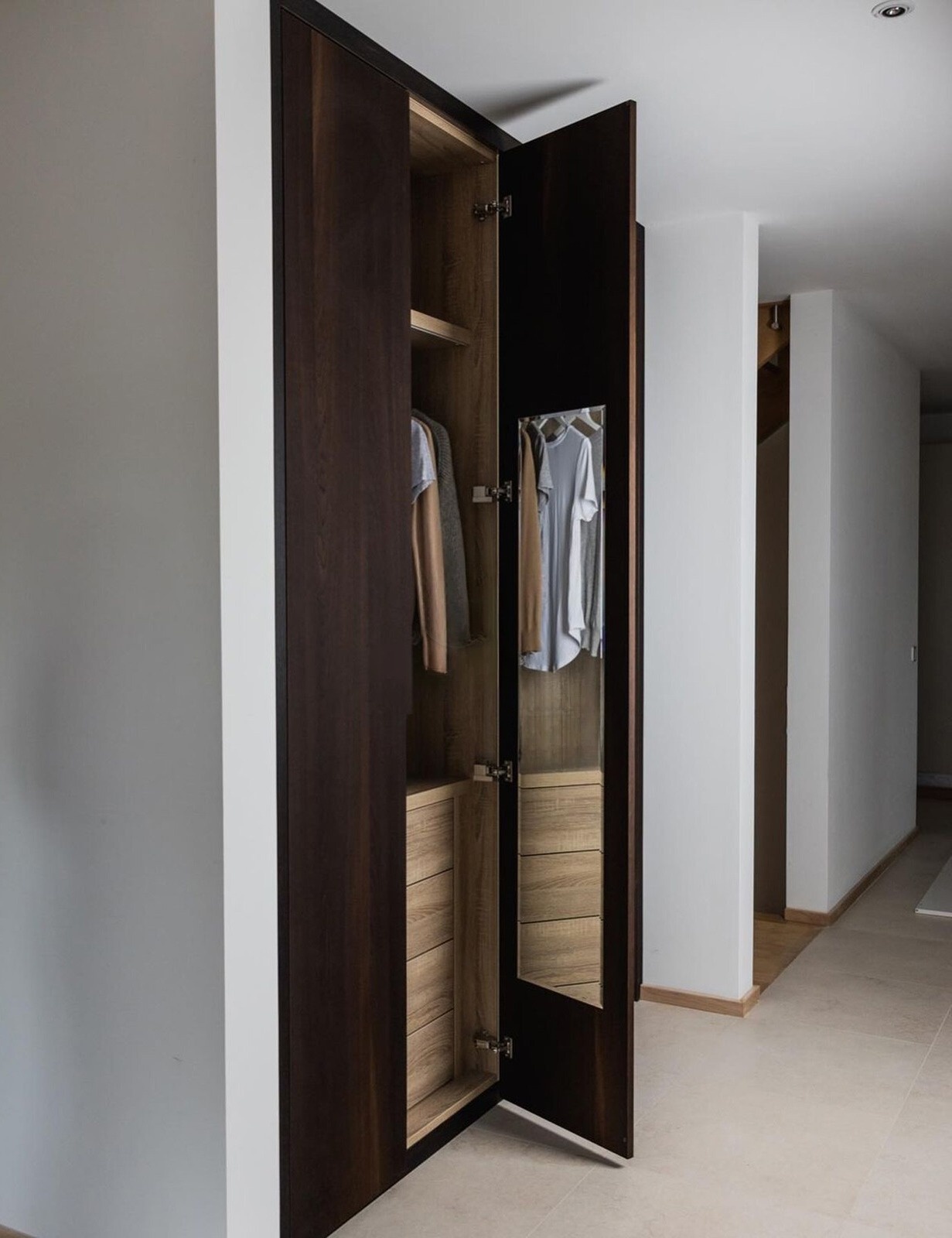 Узкий встроенный в нишу шкаф с жалюзийными дверцами «Модель 1333»