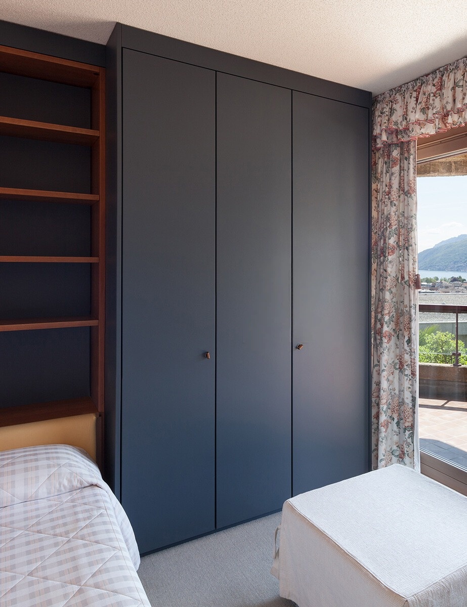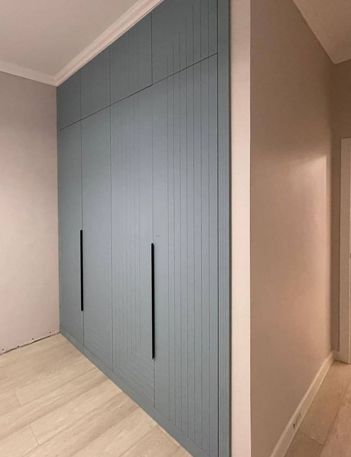 Встроенный в нишу голубой шкаф с фрезерованными дверями «Модель 1300»