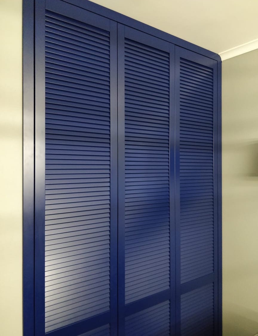 Ярко-синий жалюзийный распашной шкаф «Модель 1332»