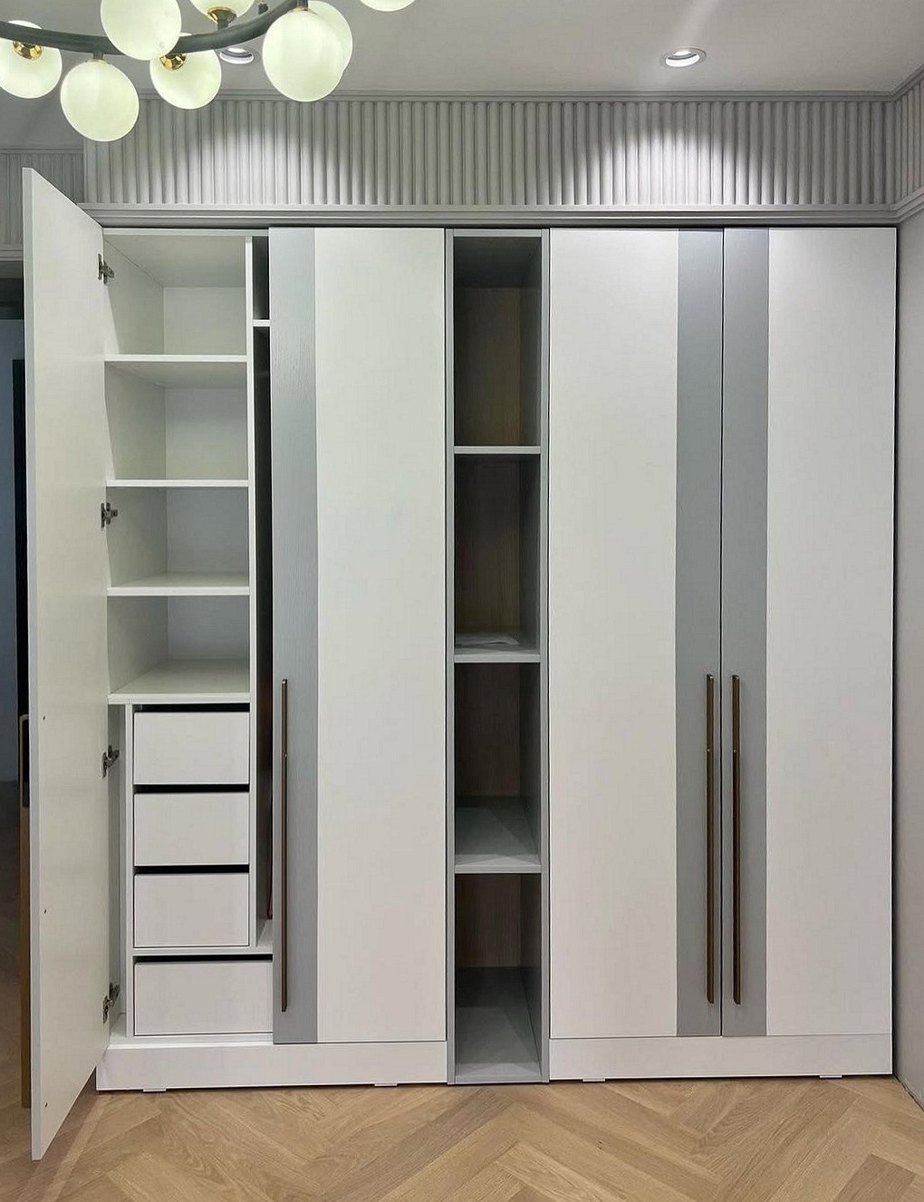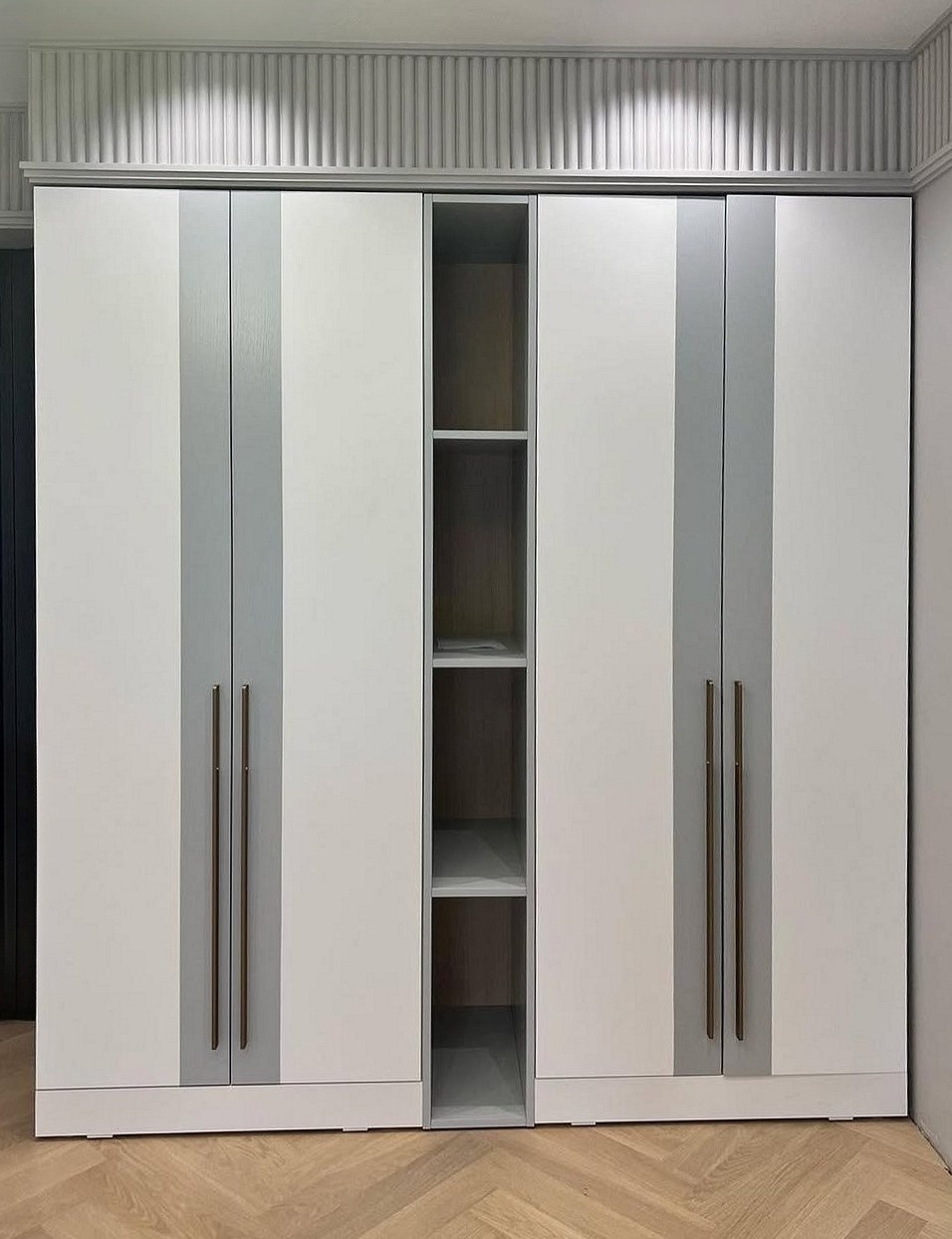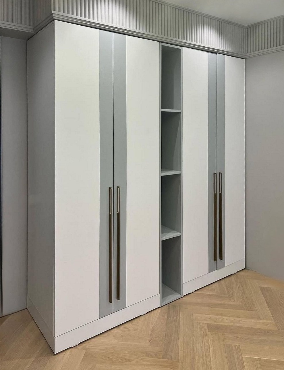 Широкий шкаф с фрезеровкой и открытой нишей в спальню «Модель 1247»