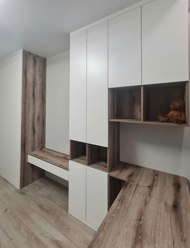 Шкаф в скандинавском стиле с антресолью и ящиками «Модель 5»