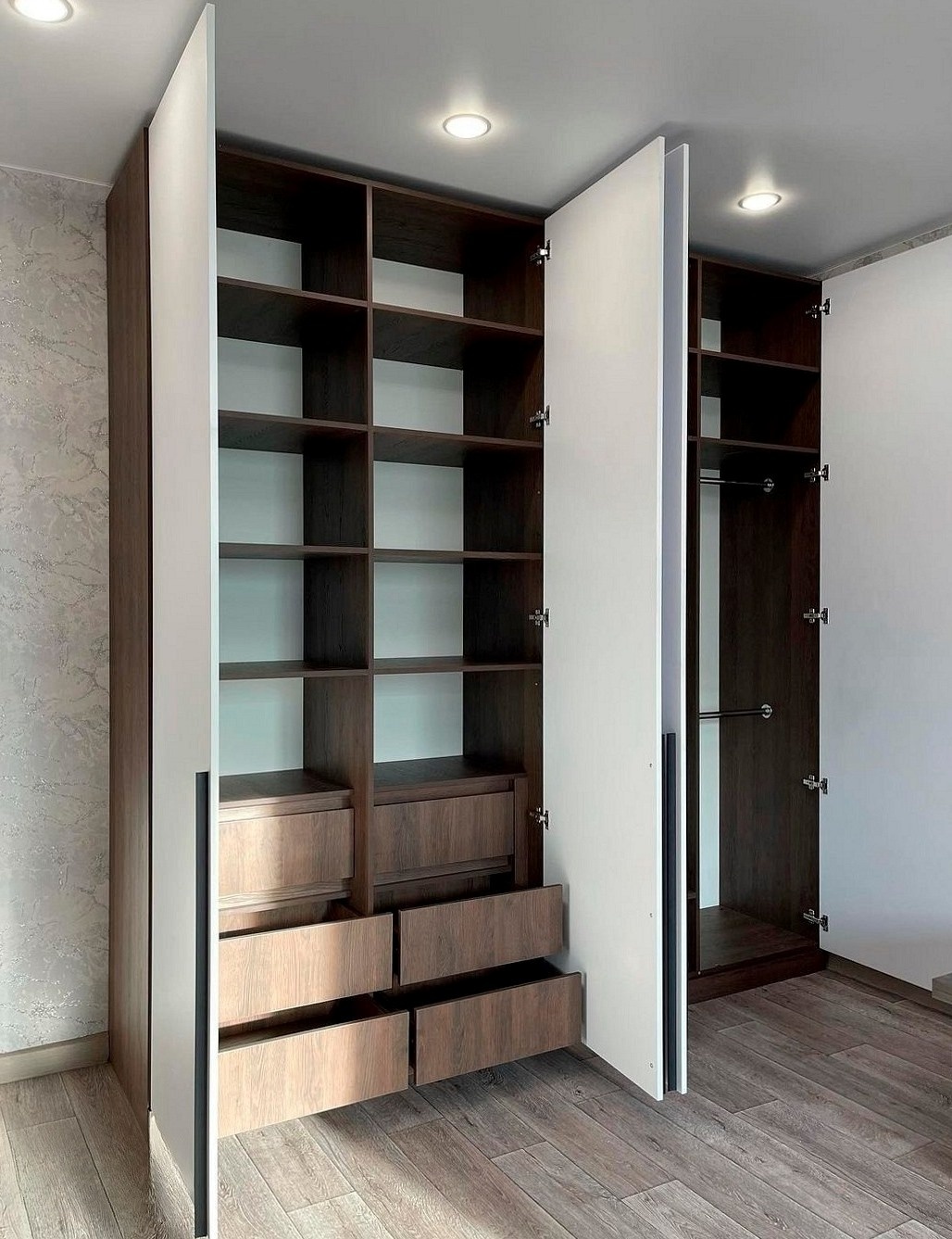 Современный шкаф под потолок с выдвижными ящиками «Модель 34»