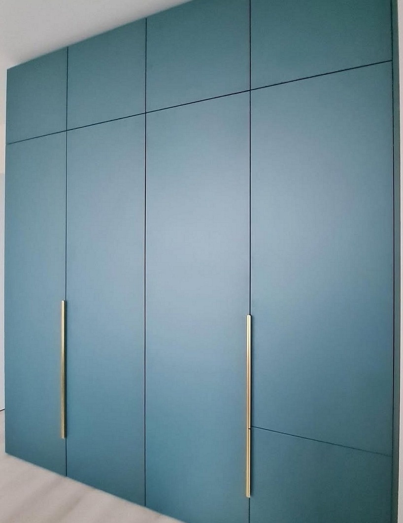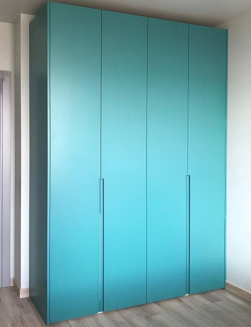 Высокий синий распашной шкаф до потолка «Модель 51»