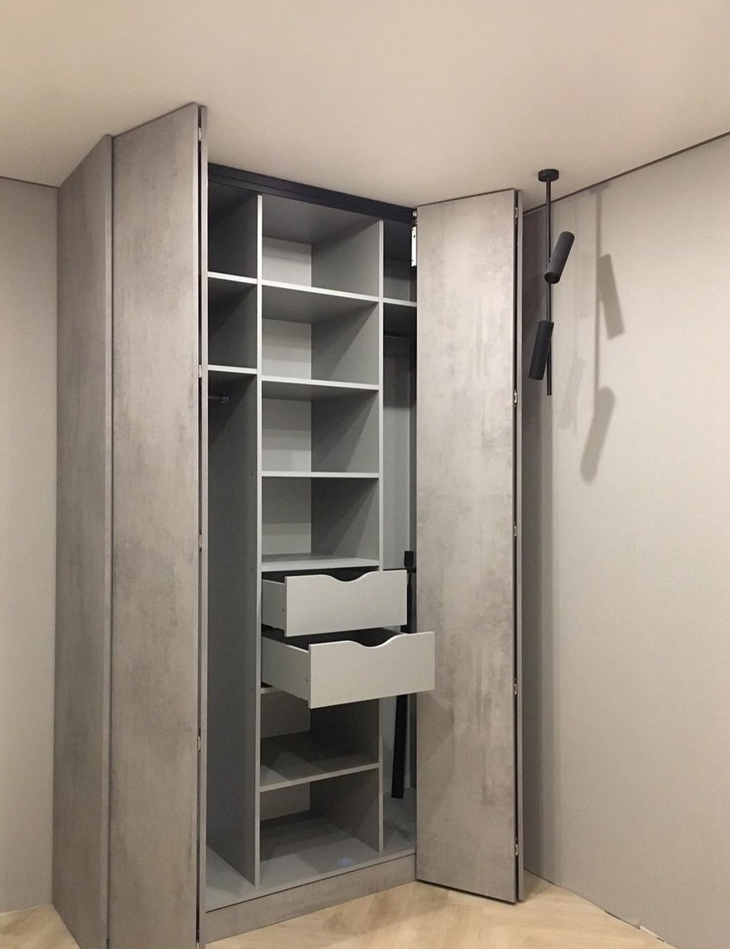Распашной шкаф с дверями-гармошкой цвет бетон «Модель 81»