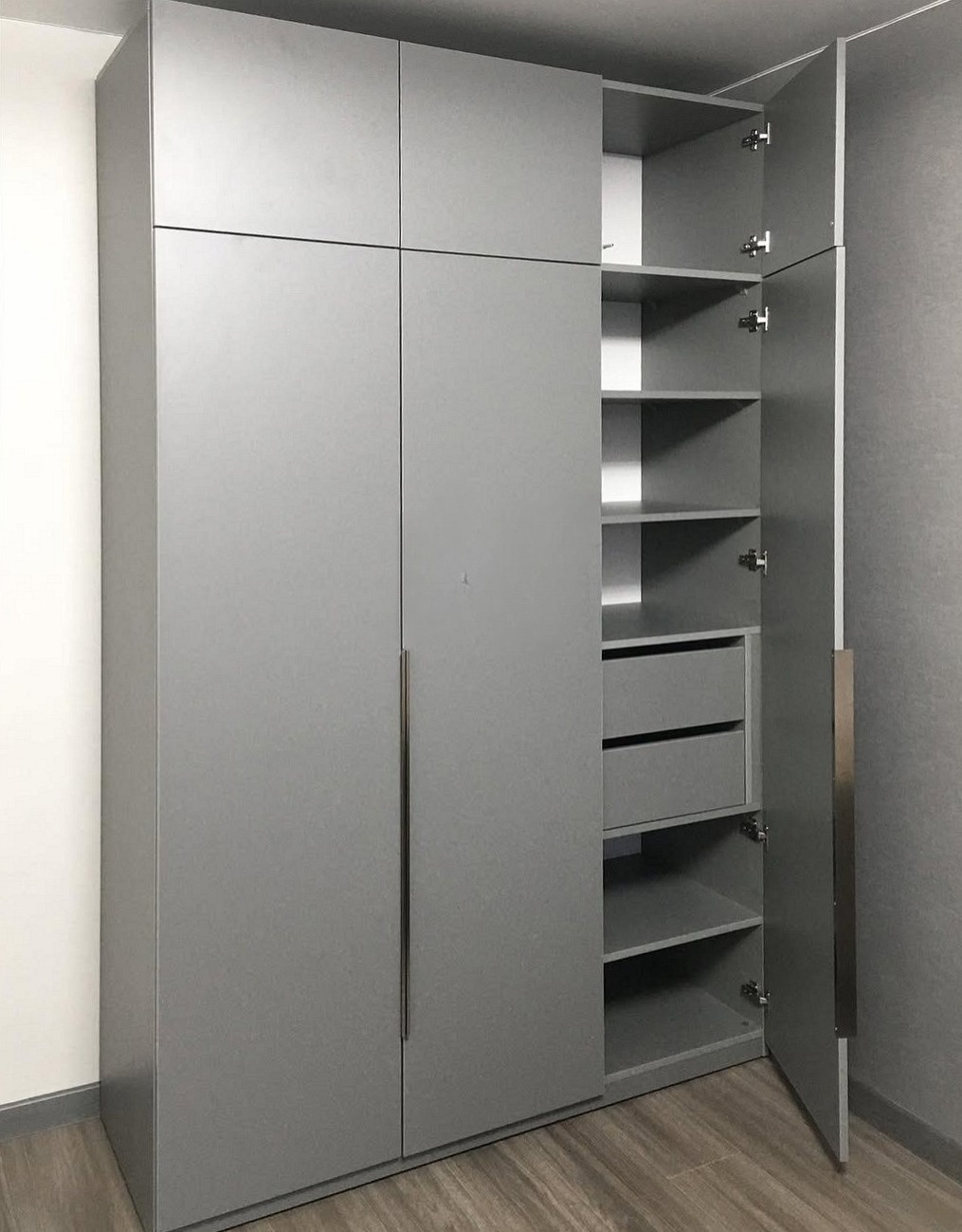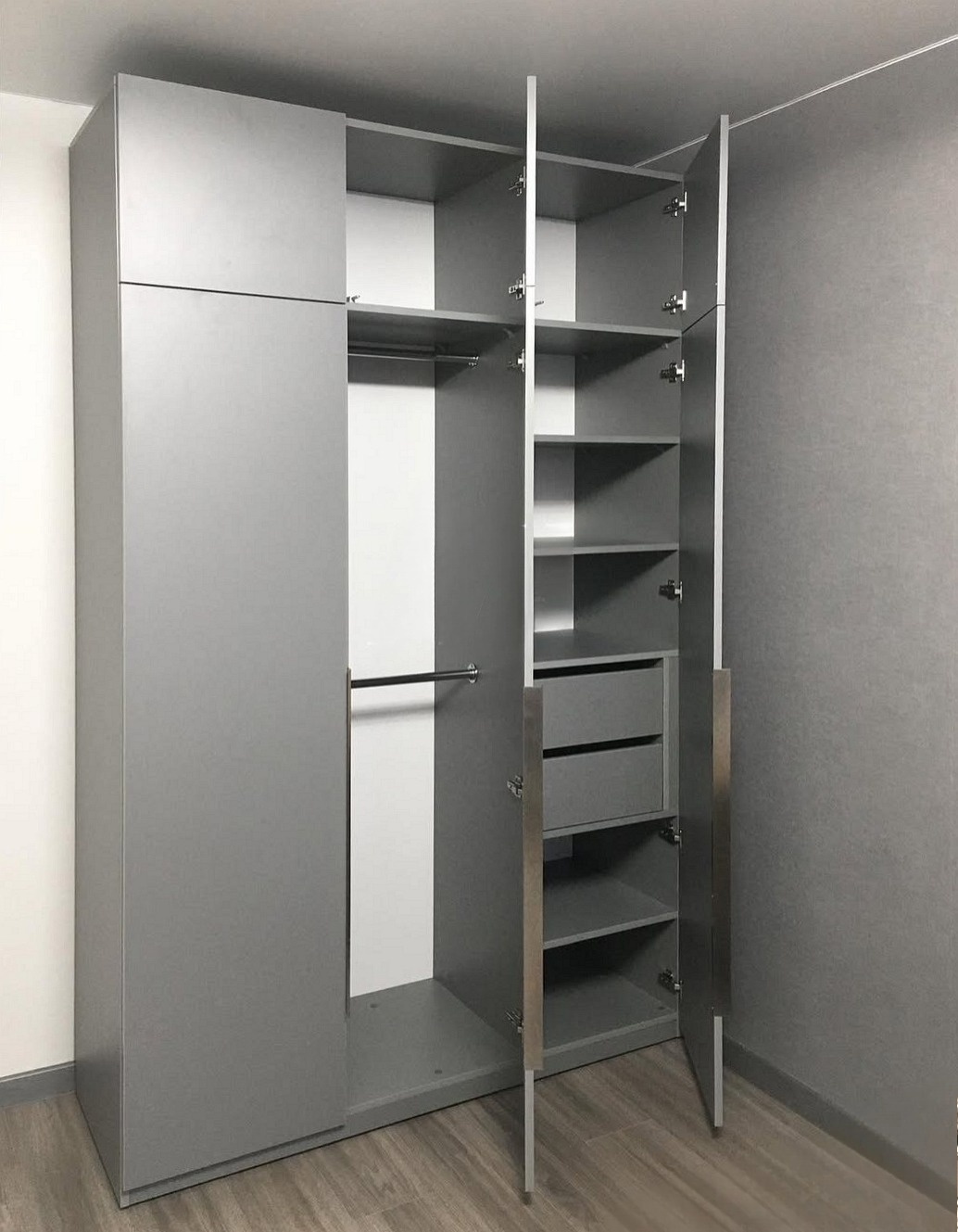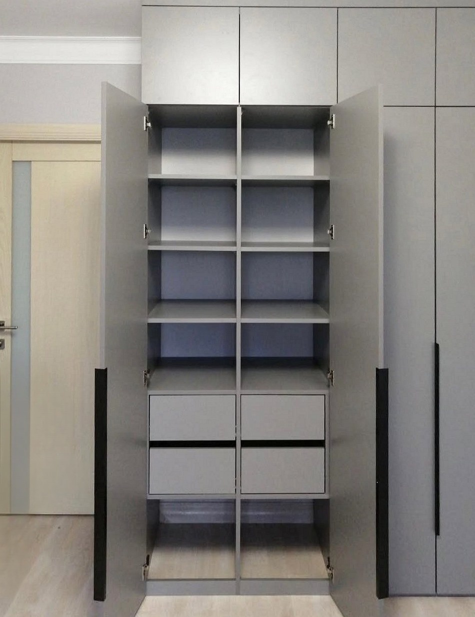 Серый распашной шкаф с открытыми полками «Модель 7»