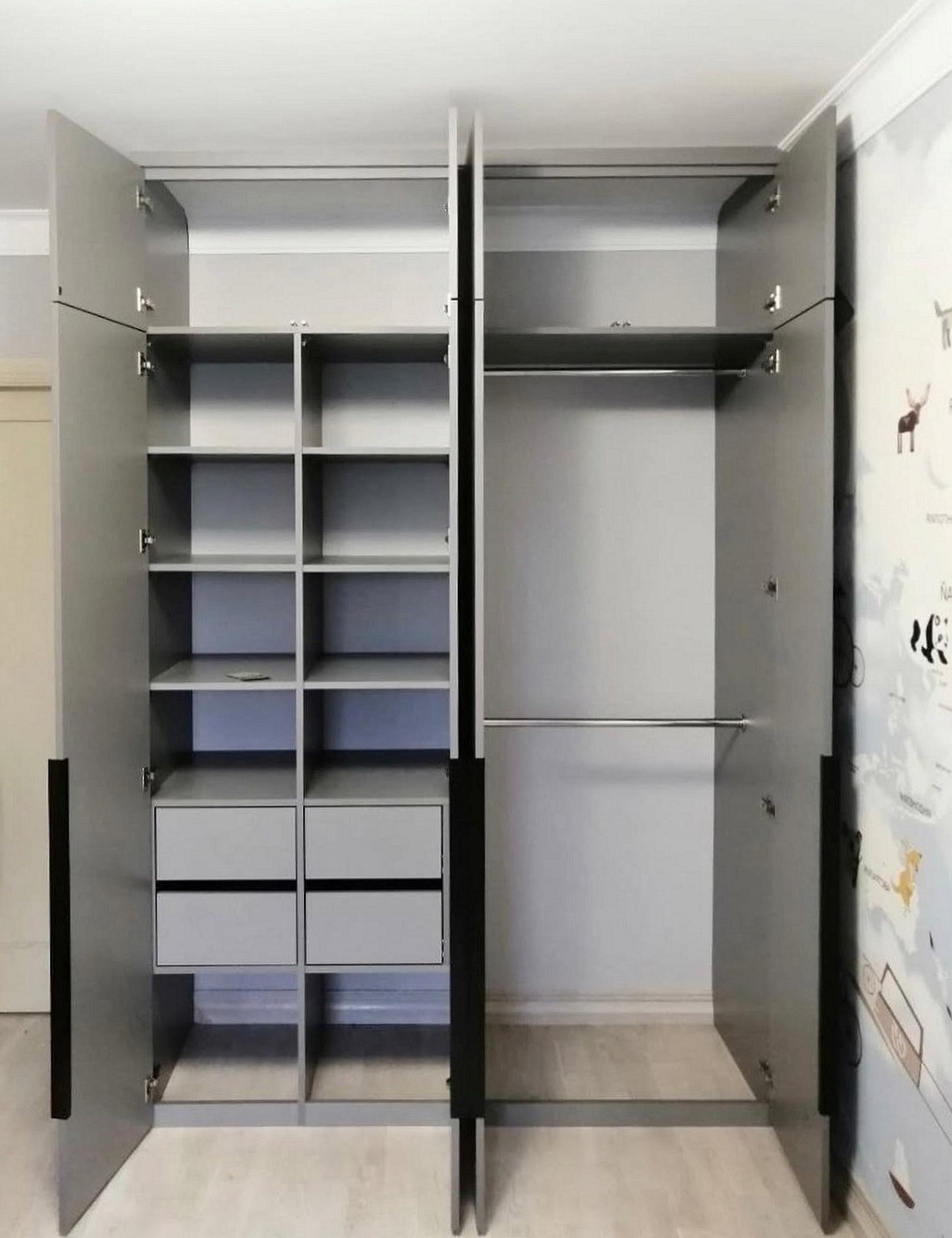 Шкаф распашной серого цвета в детскую «Модель 56»