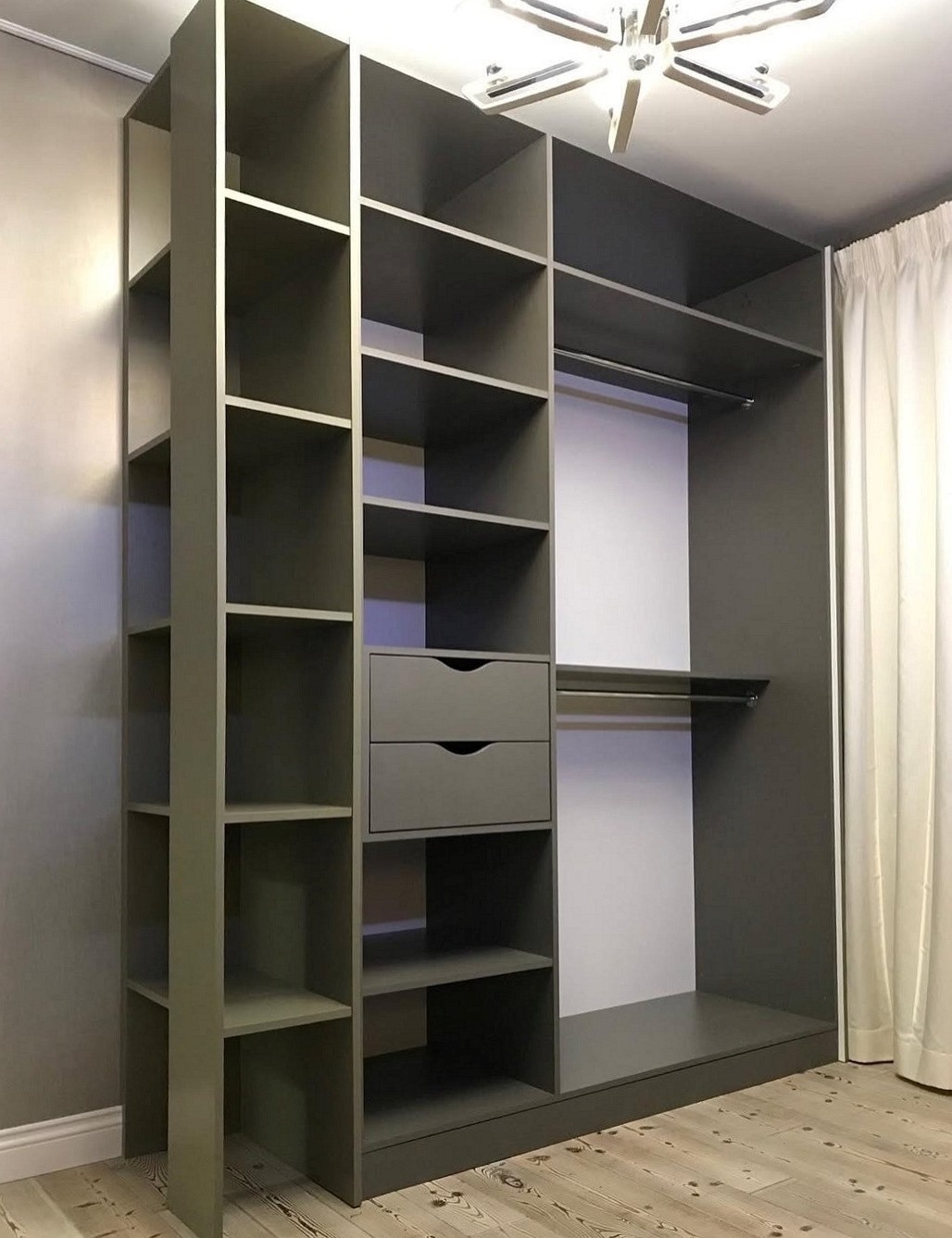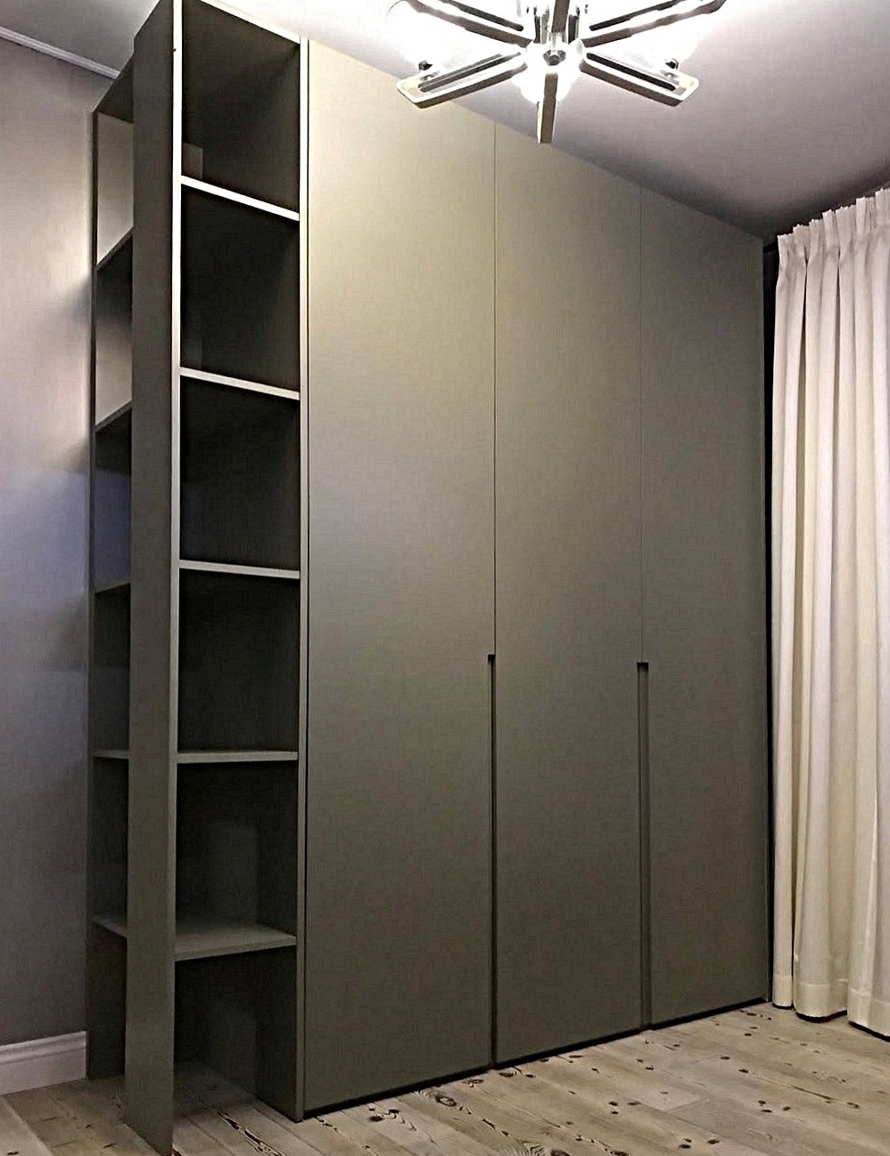 Серый распашной шкаф с открытыми полками «Модель 7»