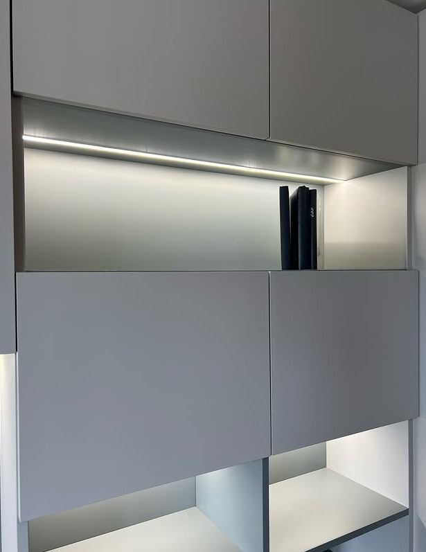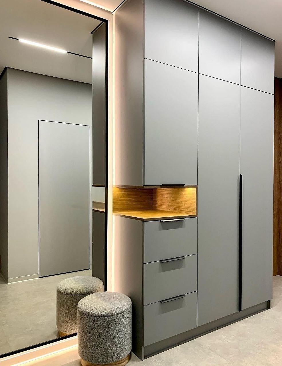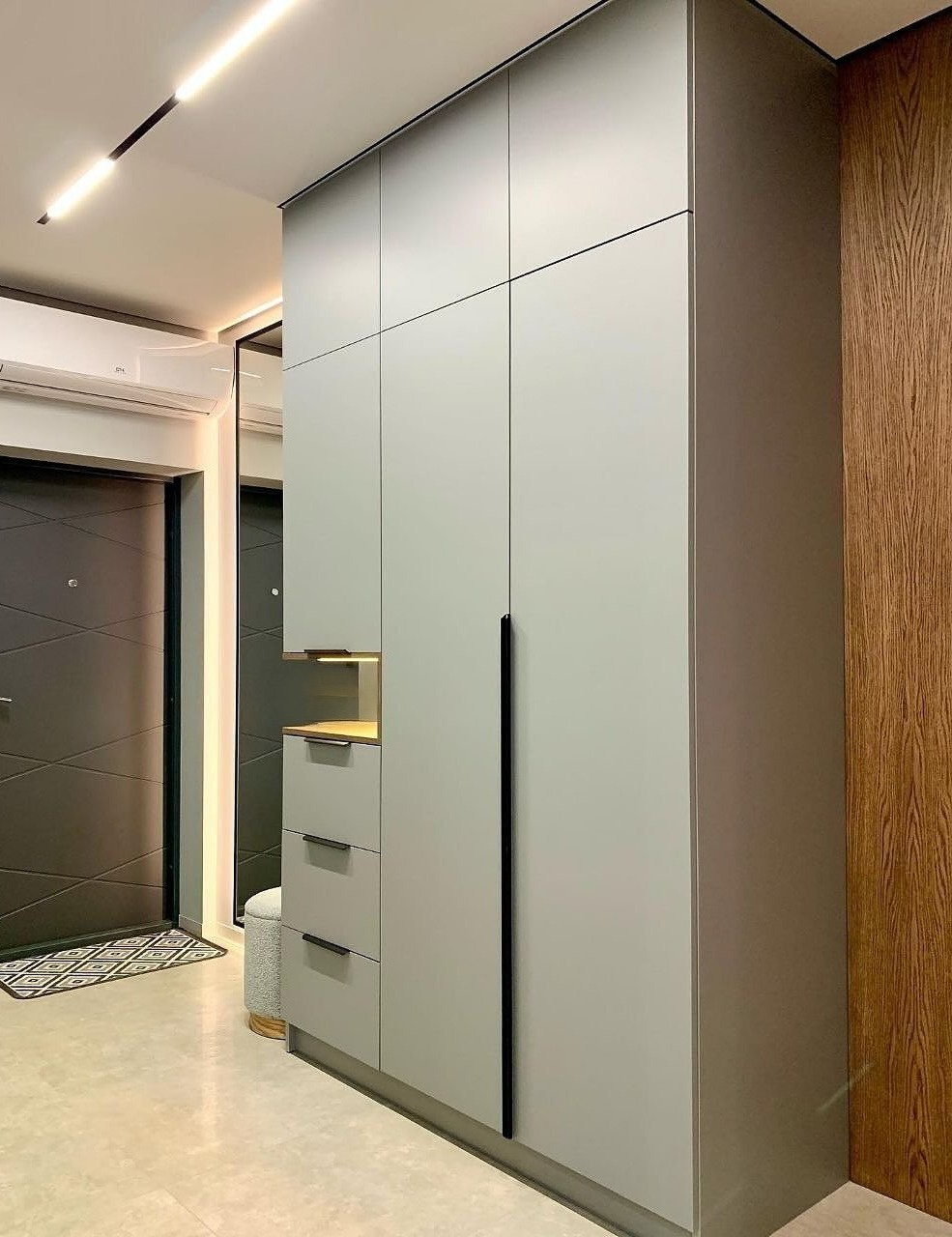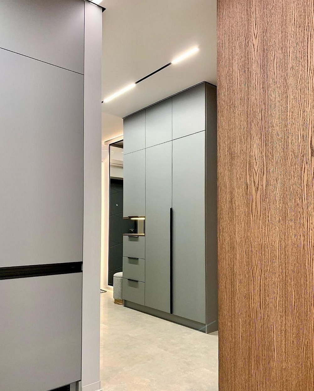 Встраиваемый шкаф вокруг двери серого цвета в минимализме «Модель 1318»