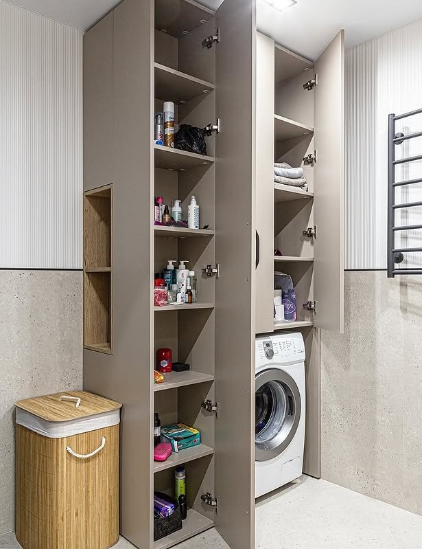 Большой встроенный жалюзийный шкаф в постирочную «Модель 1330»