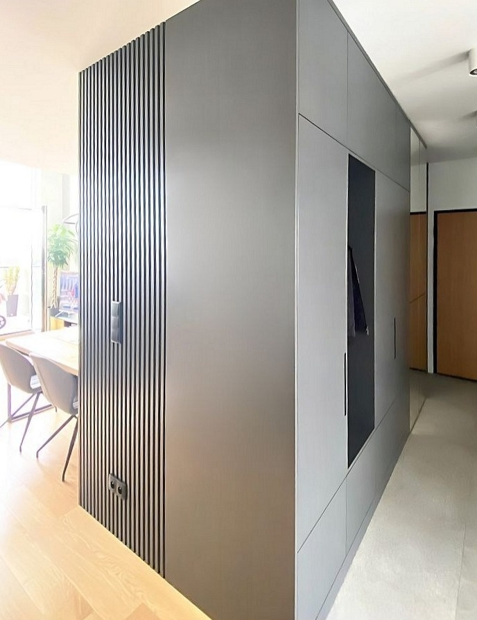 Шкаф цвета графит с жалюзийным фасадом в прихожую «Модель 1348»