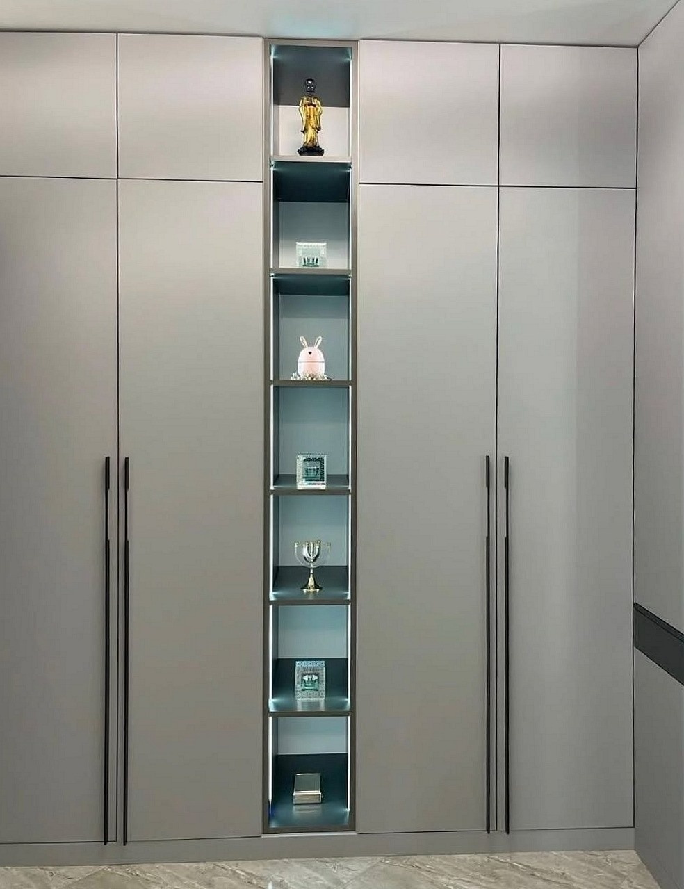 Серый 4х дверный шкаф с открытой полкой «Модель 356»