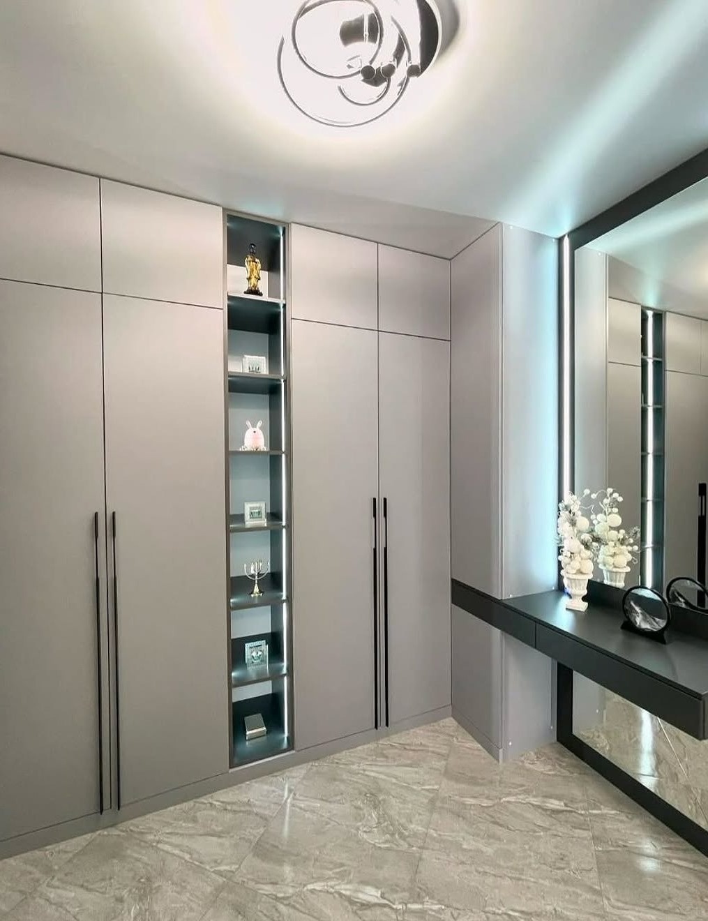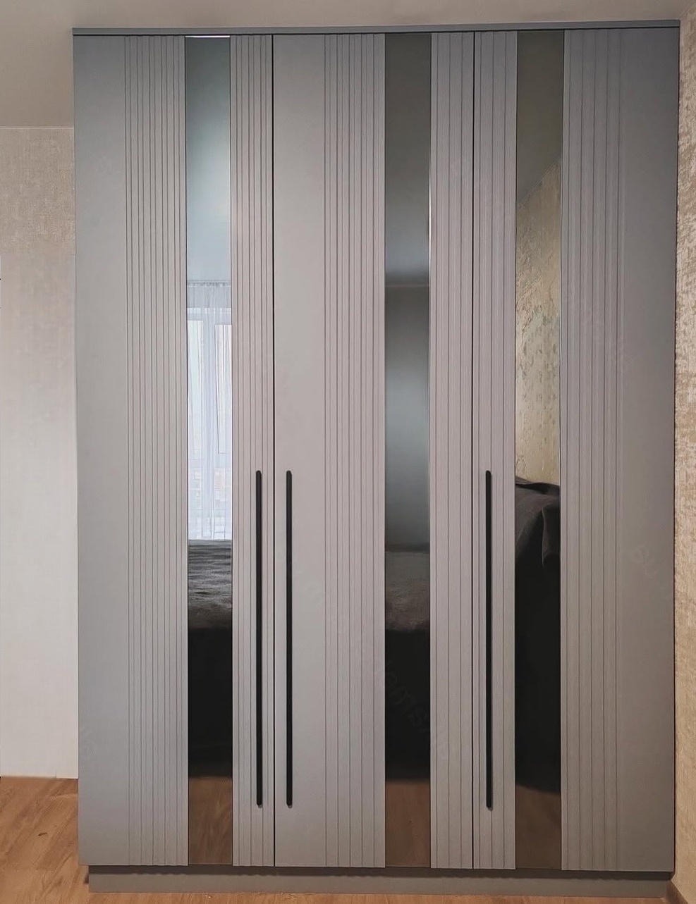 Встроенный 3х дверный шкаф серого цвета «Модель 277»